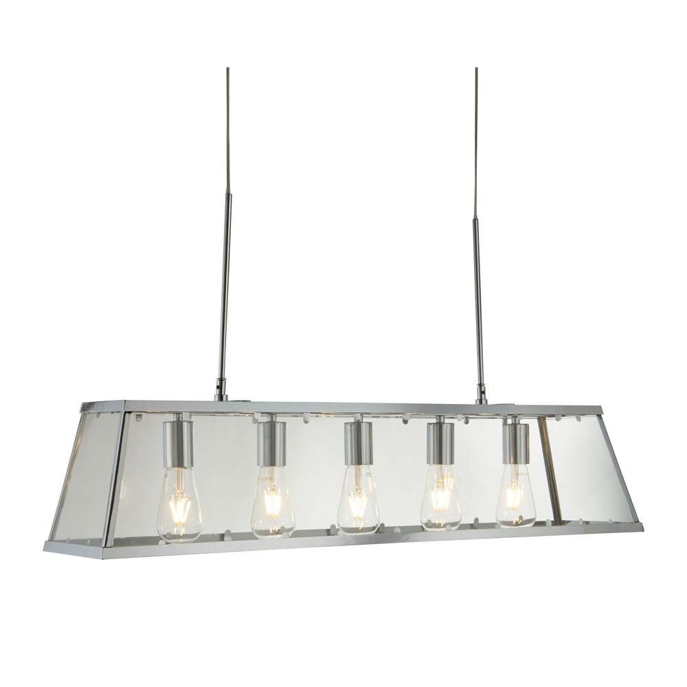 Diese schrullige Laternenleiste aus klarem Glas beherbergt 5 Lichter und vermittelt ein urbanes Flair. Freiliegende Glühbirnen bilden einen modernen Rand und sorgen dafür, dass der Gegenstand hervorsticht, während das schlanke Chrom-Finish eine zeitlose Ausstrahlung erzeugt. Fügen Sie Ihrem zeitgenössischen Aufenthaltsraum, Esszimmer oder Küche hinzu.