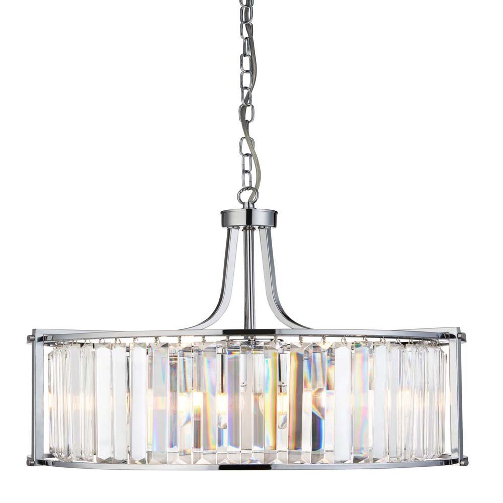 Die Victoria-Leuchtenserie bietet einen traditionellen, aber glamourösen Stil für Ihr Zuhause. Der 5-flammige Drum-Anhänger hat ein Chromfinish mit klarem Kristalldesign. Wenn er beleuchtet wird, wirkt er sehr schön. Verleihen Sie Ihrem Wohnraum diesen kühnen Akzent.