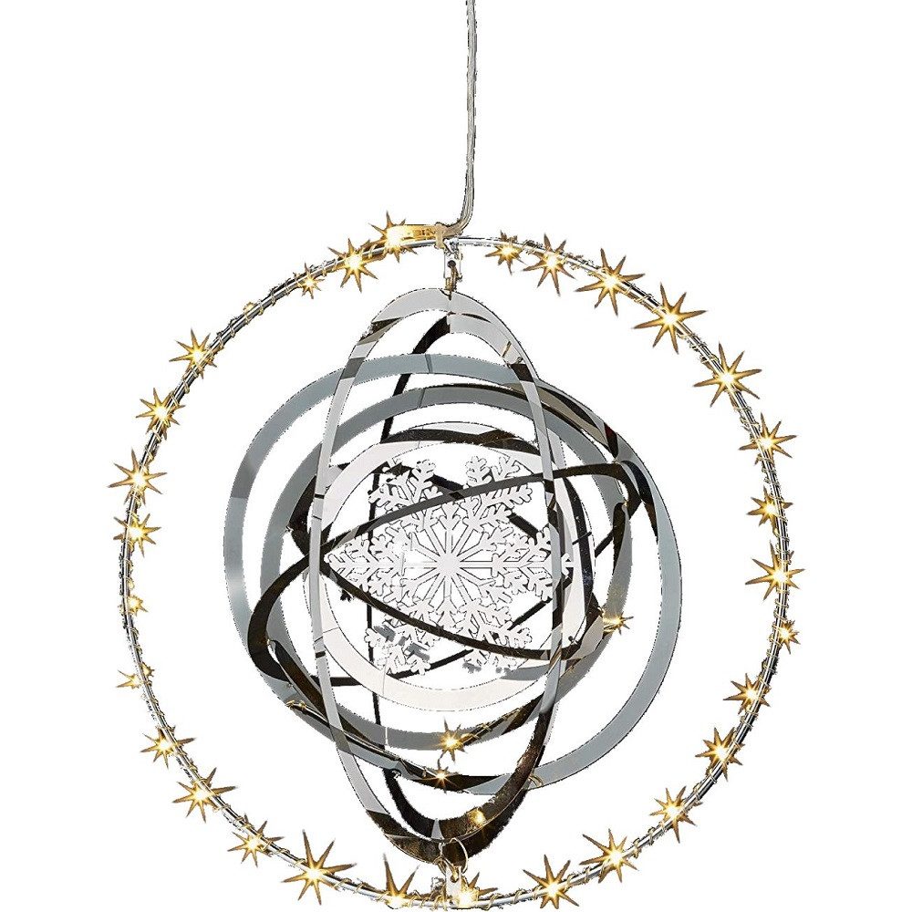 1063 3D Hänger Kreis "Mirror" mit Schneefocke 30er warmweiß 3xAA Batterie 6/18h Timer 20x20cm