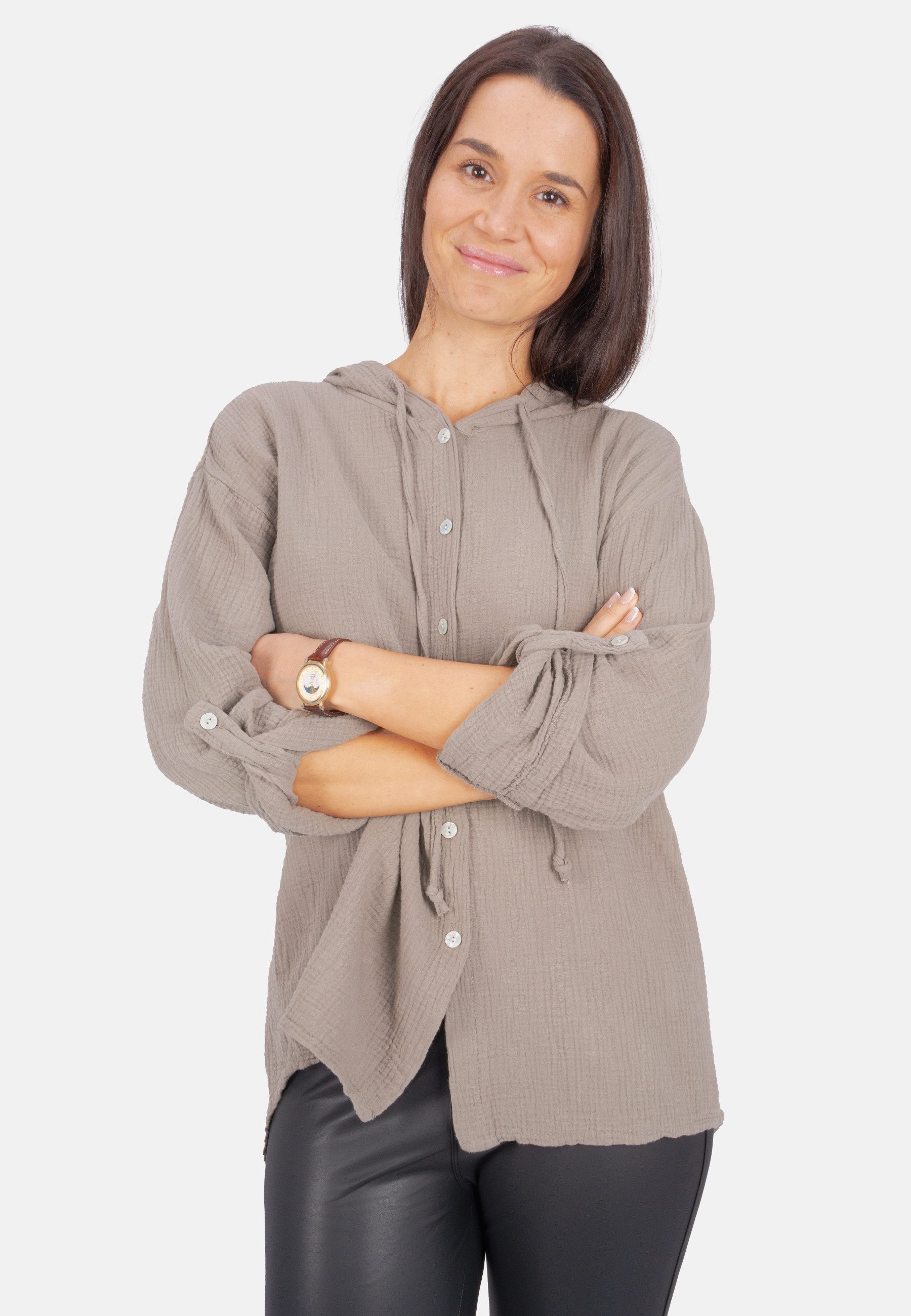Besondere Merkmale | 100% Baumwolle Musselinbluse: Oversized, Halbarm & Kapuze |