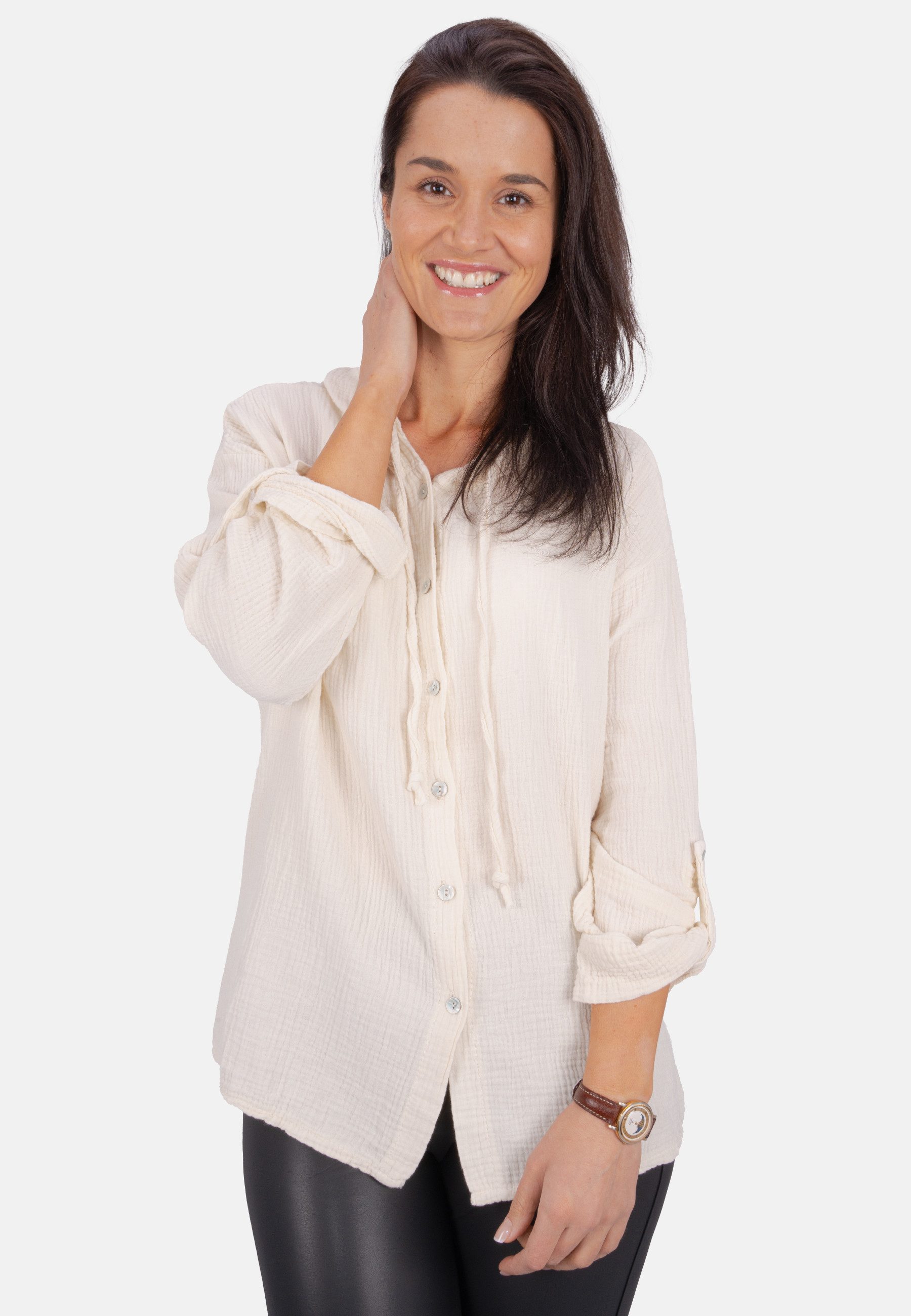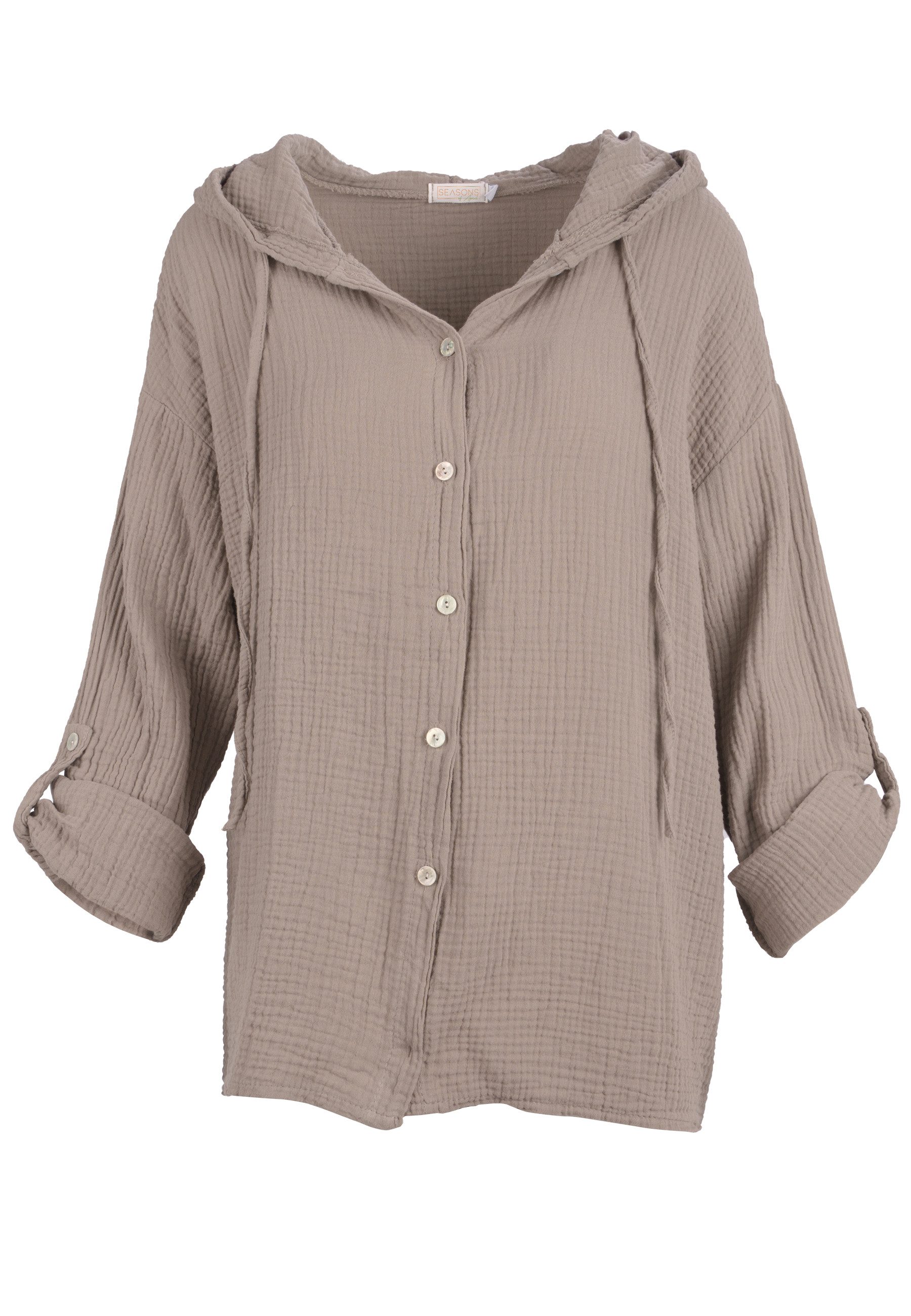 Besondere Merkmale | 100% Baumwolle Musselinbluse: Oversized, Halbarm & Kapuze |