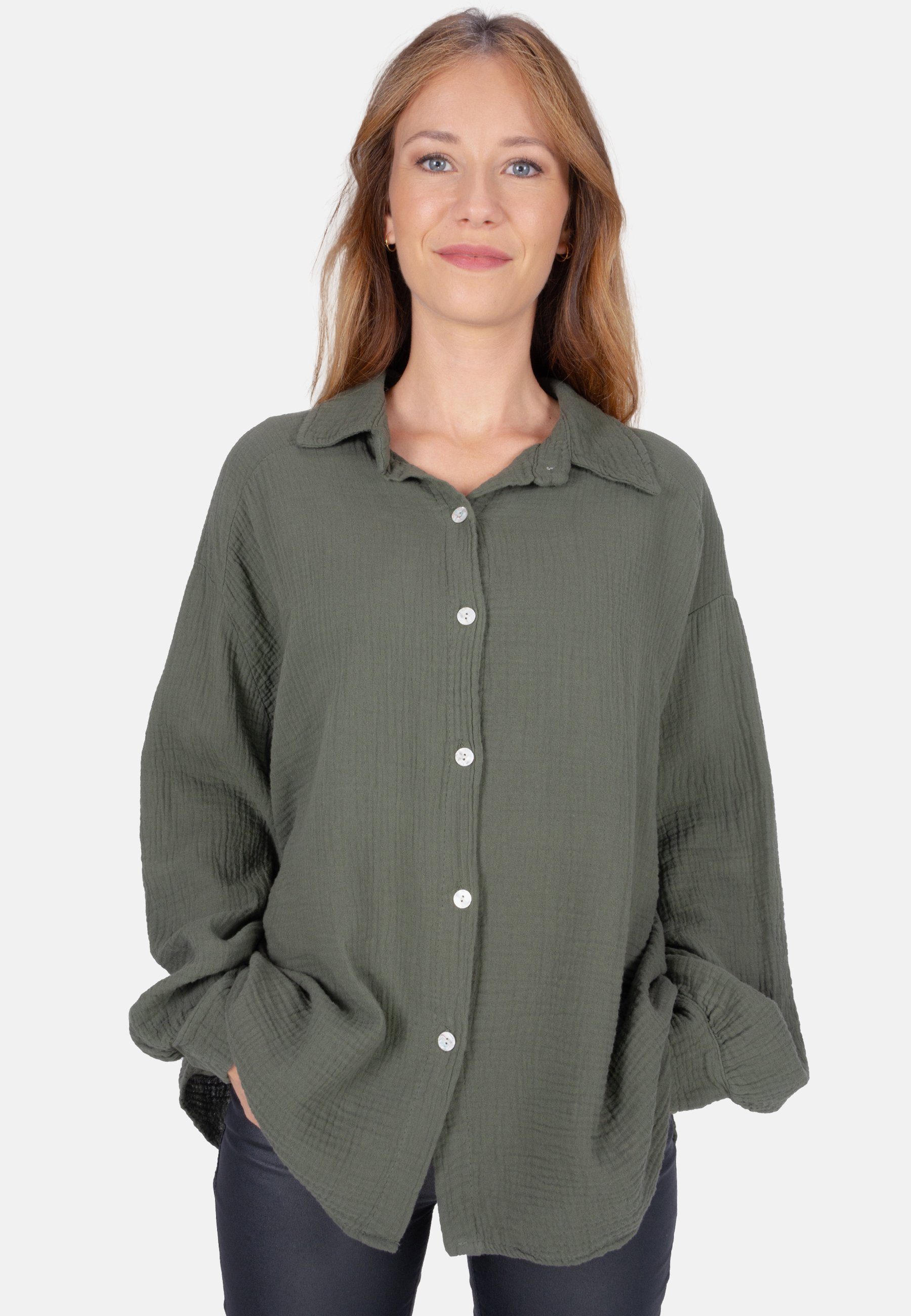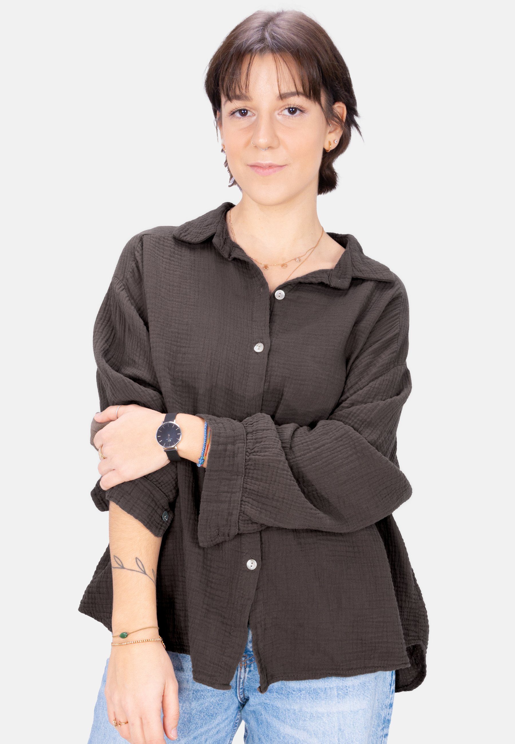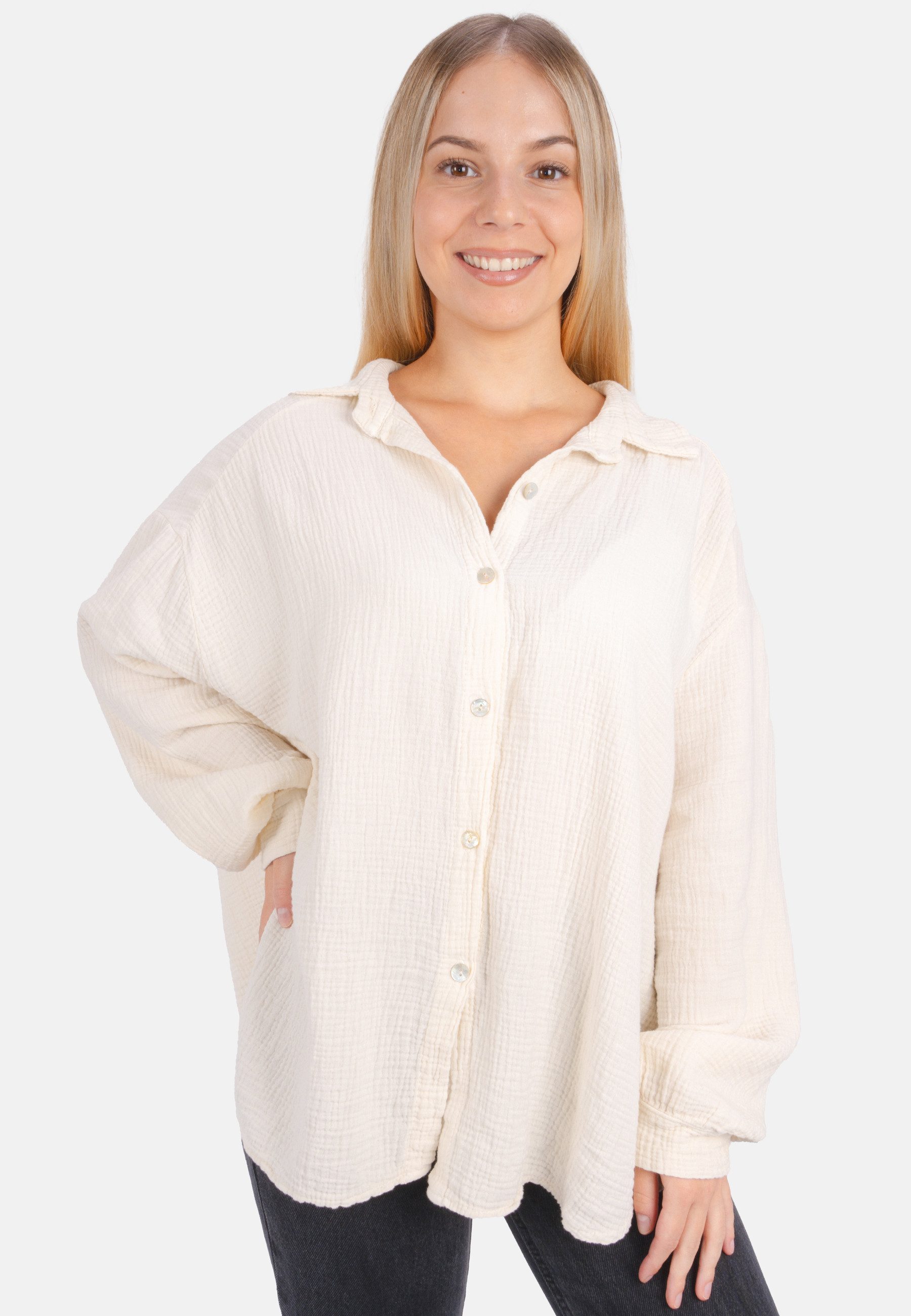 Besondere Merkmale | Kurze Musselin Hemdbluse mit Knopfverschluss aus 100% Baumwolle |