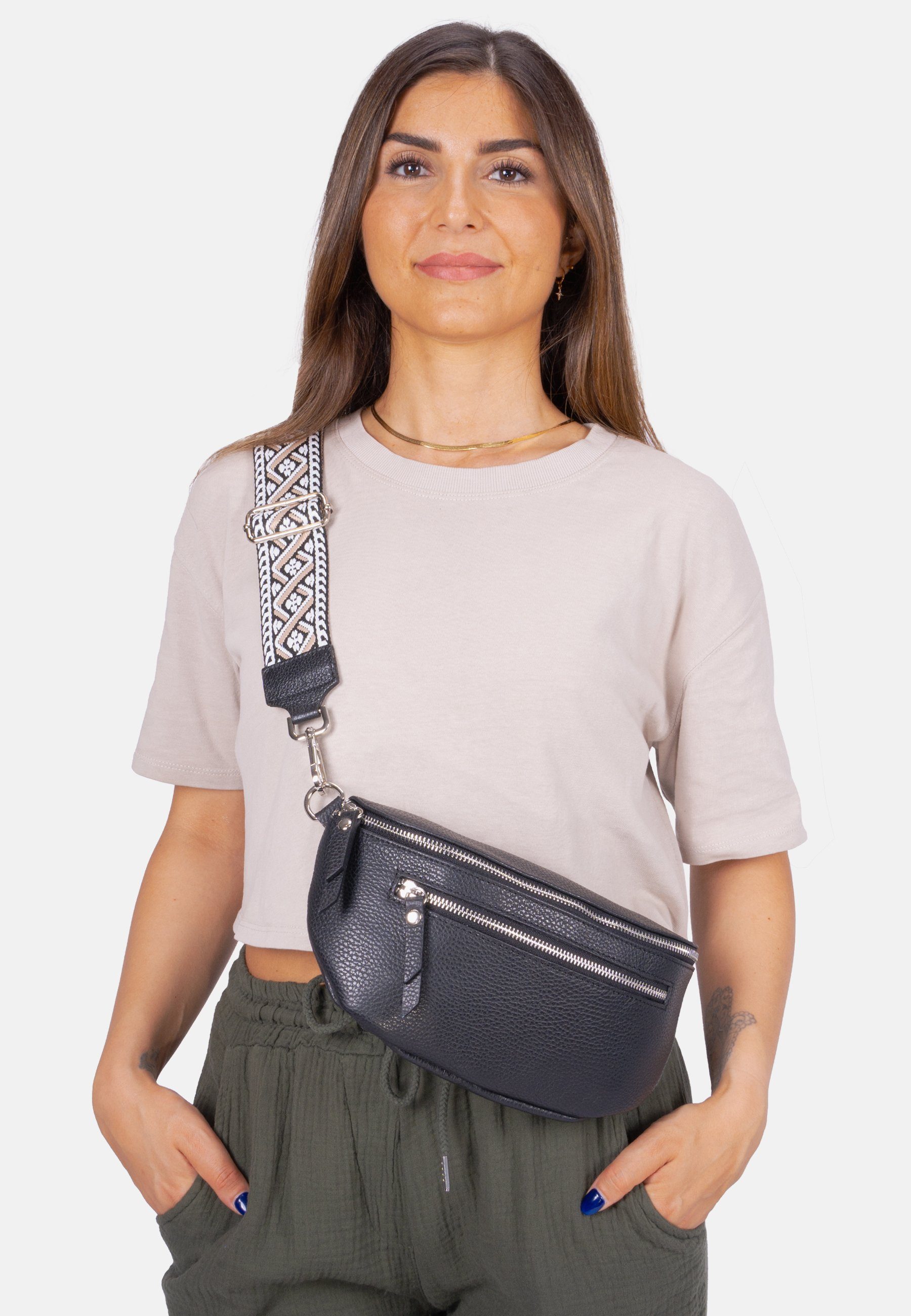 Besondere Merkmale | Mittelgroße Umhängetasche aus 100% Leder mit breitem Gurt und 2 Zipper |