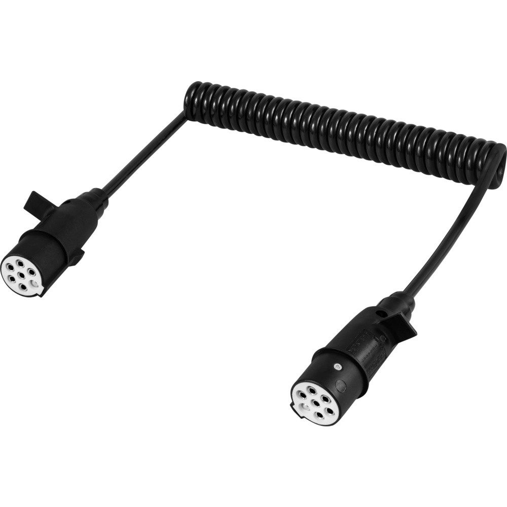 Diese hochwertige Wendeleitung 7-polig vom Typ S nach ISO 3731 eignet sich ideal für den Einsatz in 24-Volt-Bordnetzen von LKWs, Anhängern und Nutzfahrzeugen. Mit einer Kabellänge von 3,5 Metern und einem robusten Spiralkabel garantiert sie eine sichere, flexible Verbindung zwischen Zugfahrzeug und Anhänger
