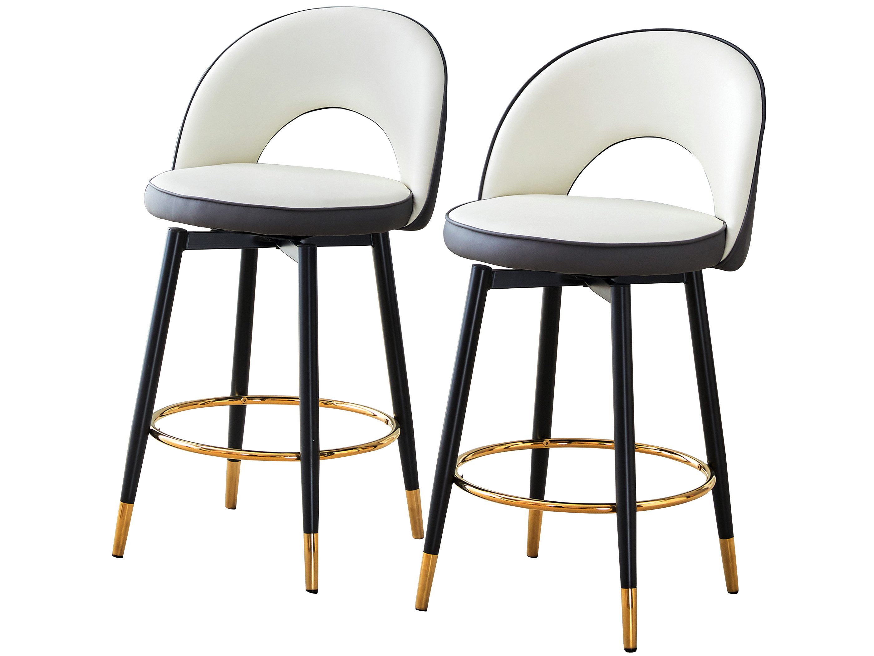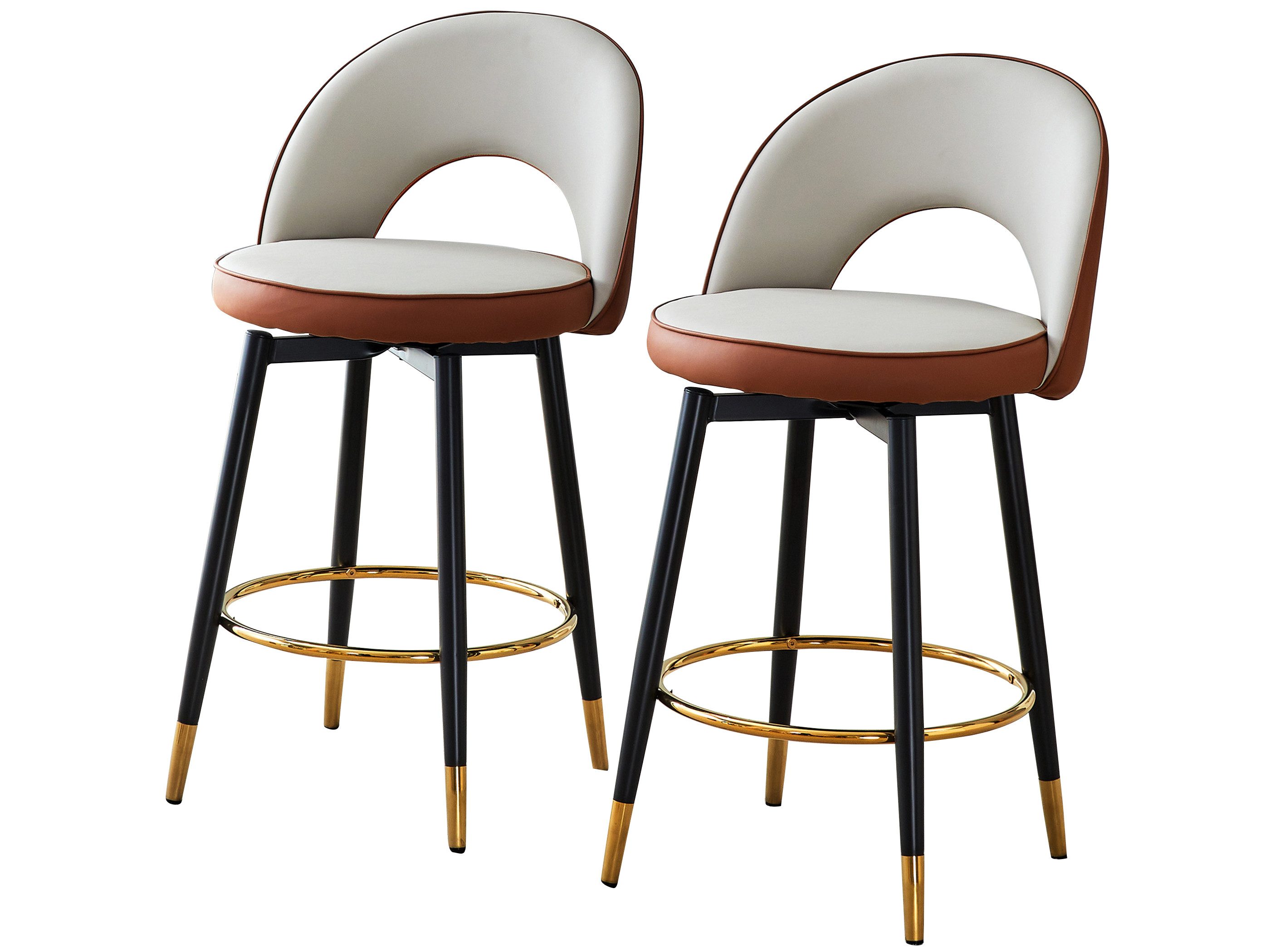 Dieses 2er Set Barhocker vereint modernes Design mit hohem Sitzkomfort. Die kontrastfarbenen Hocker sind mit einem Bezug aus pflegeleichtem PU-Leder ausgestattet und verfügen über eine ergonomisch geschwungene Rückenlehne. Die Sitzflächen sind weich gepolstert und lassen sich bequem um 360° drehen, was für maximale Flexibilität im Alltag sorgt. Das robuste Metallgestell mit runder Fußstütze bietet Stabilität, während Antirutschmatten für sicheren Halt und Bodenschutz sorgen. Ideal für Kücheninseln, Hausbars oder Essbereiche – diese Barhocker setzen stilvolle Akzente und laden zum Verweilen ein.
