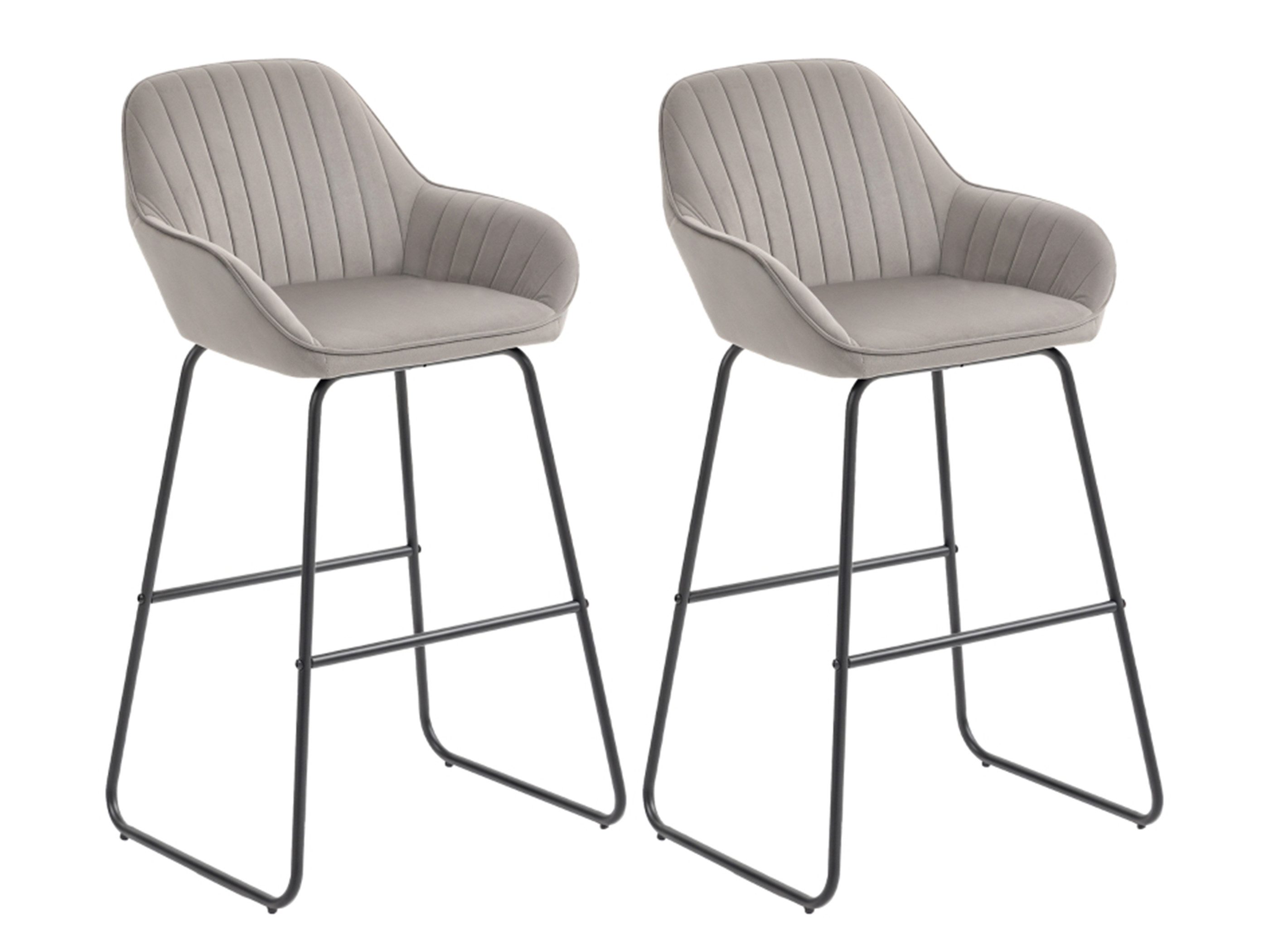 Dieses 2er-Set Barhocker vereint modernes Design mit hohem Sitzkomfort. Der weiche Stoffbezug in Kombination mit der dicken Schaumstoffpolsterung lädt zum Verweilen ein. Die schräg gestaltete Rückenlehne mit elegantem Streifenmuster sowie die gepolsterten Armlehnen sorgen für ein rundum angenehmes Sitzgefühl. Die seitliche Metallstangen dienen als praktische Fußstütze und unterstützen eine ergonomische Sitzhaltung. Das stabile Gestell aus pulverbeschichtetem Metall wird durch rutschfeste Stützschrauben ergänzt, die sicheren Halt bieten und gleichzeitig Ihren Boden schützen. Ob an der Kücheninsel, am Bartisch oder im Essbereich – diese Barhocker setzen stilvolle Akzente und machen Ihre Einrichtung komplett.