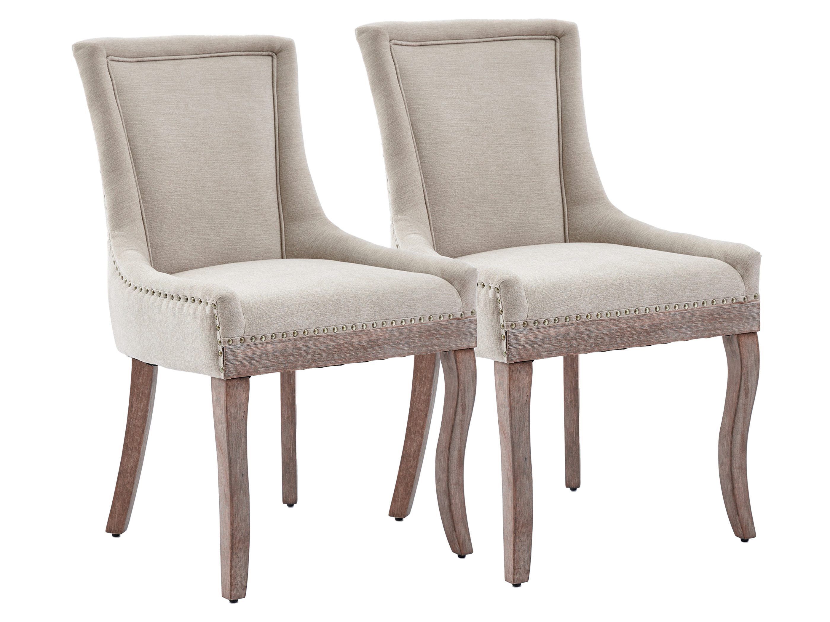 Dieses 2er Set Esszimmerstühle kombiniert Eleganz, Komfort und Stabilität. Der weiche Chenille-Bezug und der hochdichte Schwamm mit Stahl-Federkern sorgen für ein angenehmes Sitzgefühl, während die geschwungene hohe Rückenlehne optimalen Halt bietet. Die umlaufenden Nieten setzen stilvolle Akzente, die Massivholz-Füße garantieren einen sicheren Stand und die Fußpads schützen Ihren Boden. Dank der einfachen Montage ist der Stuhl in wenigen Minuten einsatzbereit. Ideal für das Esszimmer, Wohnzimmer oder jeden Wohnbereich, in dem Komfort und Design aufeinandertreffen.