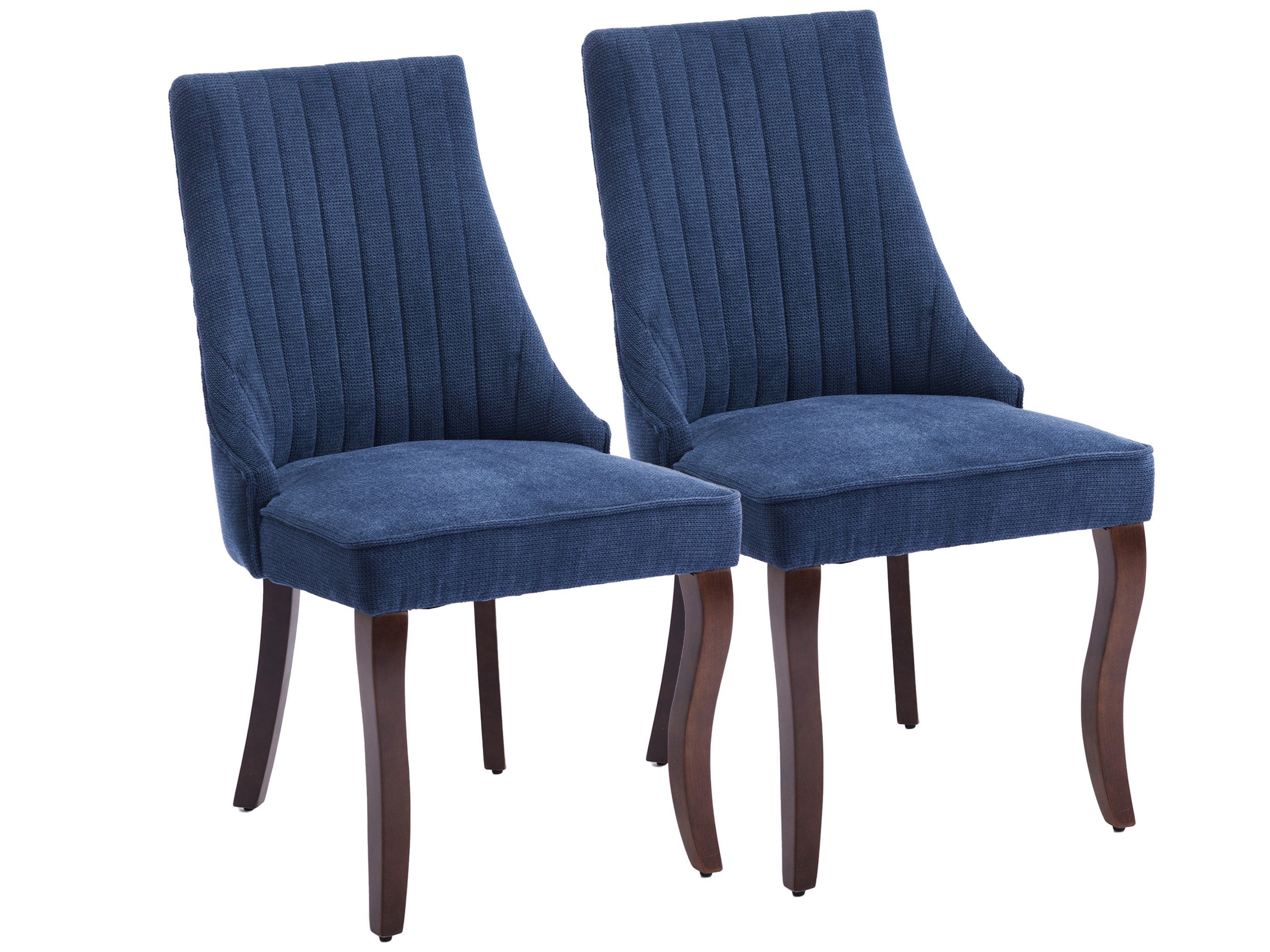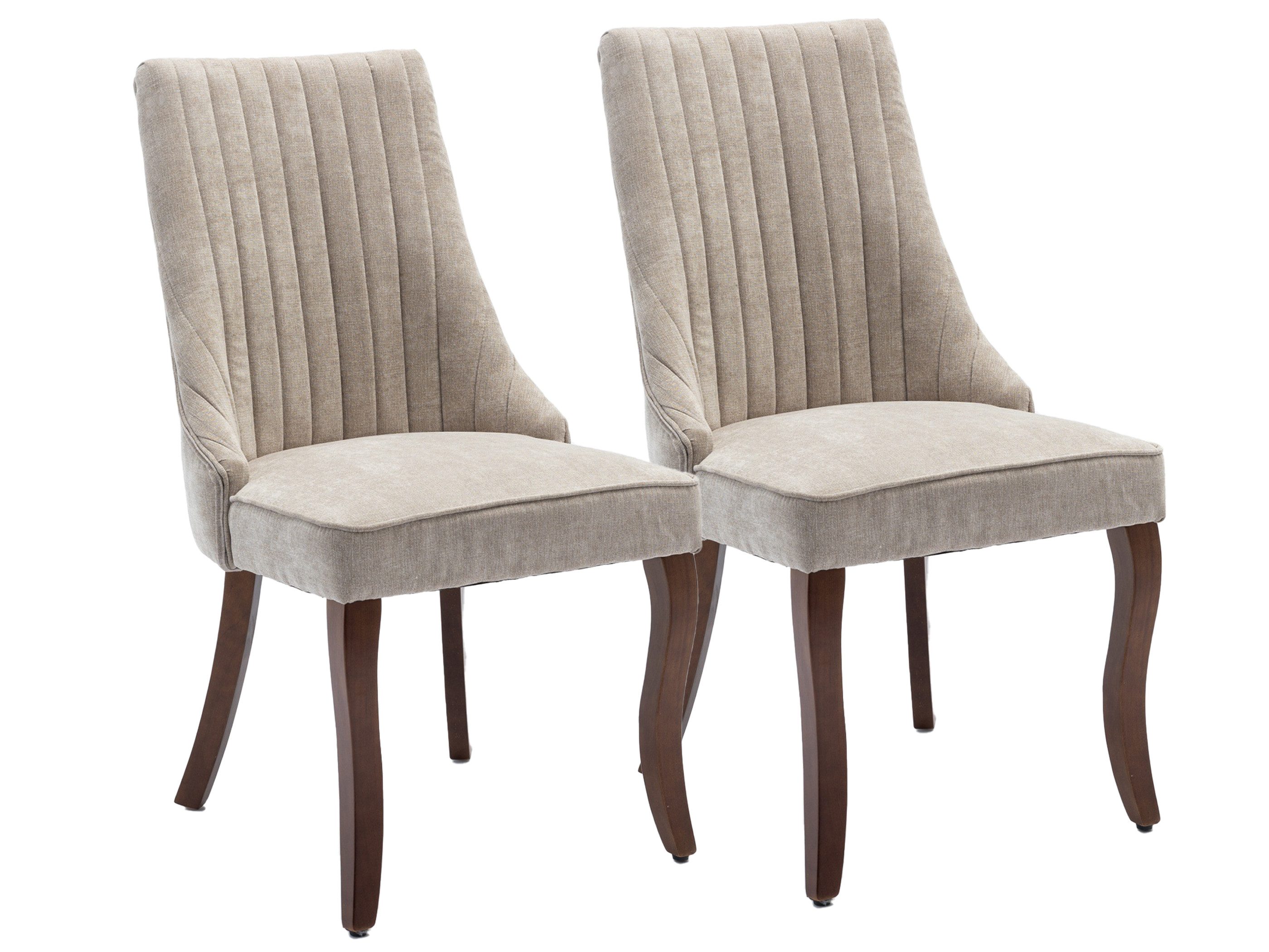Dieses 2er Set Esszimmerstühle verbindet elegantes Design mit hohem Sitzkomfort. Der weiche Chenille-Bezug, kombiniert mit einer Polsterung aus hochdichtem Schwamm und Federkern, macht die Sitzfläche besonders bequem. Die hohe, geschwungene Rückenlehne unterstützt den Rücken und verleiht zusätzlichen Halt, während die leicht aussparende Partie im unteren Bereich die Sitztiefe erweitert und so ein noch entspannteres Sitzgefühl schafft. Die stabilen Massivholzfüße, mit geschwungenem Design an der Rückseite und wellenförmigen Linien an der Vorderseite, unterstreichen die stilvolle Ausstrahlung der Stühle. Verstellbare Fußpads sorgen für einen sicheren Stand, auch auf unebenen Böden. Dank der einfachen Montage sind die Stühle in wenigen Minuten einsatzbereit und bereichern Ihr Esszimmer mit Komfort und Eleganz.