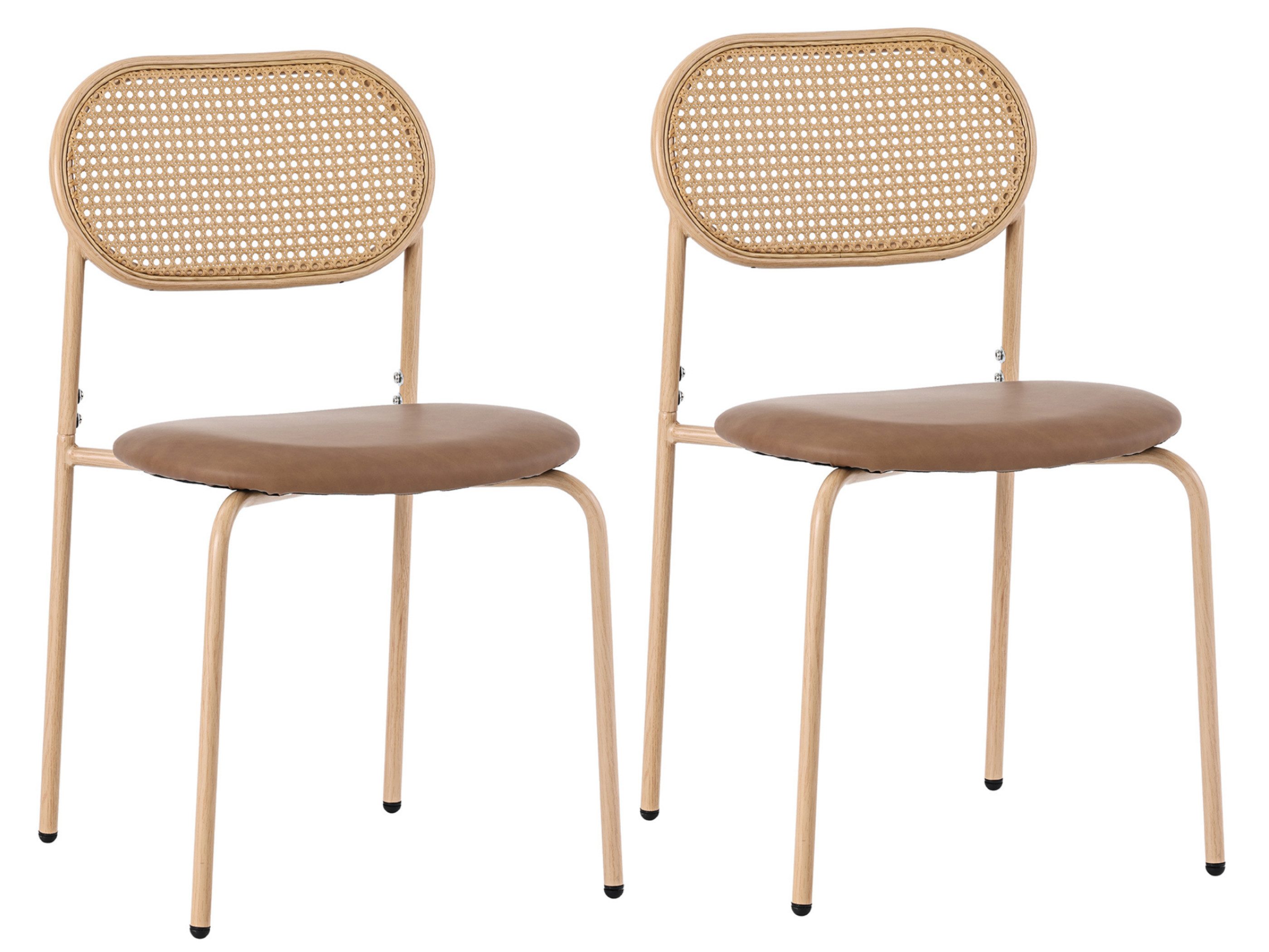 Mit Sorgfalt gefertigt, bieten diese Stühle eine ovale Rückenlehne, die speziell für ein gemütliches Sitzgefühl entwickelt wurde und sicherstellt, dass Sie während Ihrer Mahlzeit oder Versammlung stets die perfekte Haltung beibehalten. Der Kunstledersitz ist nicht nur optisch ansprechend - er lässt sich auch mühelos reinigen, sodass Sie weniger Zeit mit dem Sorgen um Verschüttetes verbringen und mehr Zeit mit dem Genießen Ihrer Mahlzeit. Mit einer natürlichen Rattan-Rückenlehne und einem abgerundeten Kunstledersitz bringen diese Stühle eine Note von Entspannung und Raffinesse in jeden Raum Ihres Hauses, sei es das Esszimmer, Wohnzimmer, Büro oder Balkon.