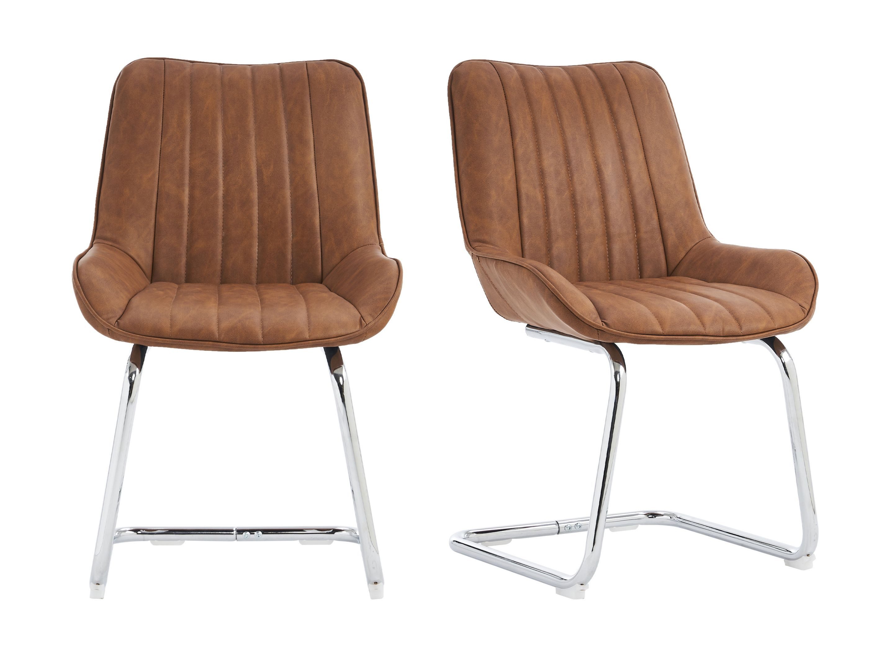 Verleihen Sie Ihrem Esszimmer mit diesem 2er-Set Freischwinger-Stühle Stil und Komfort. Das moderne Design mit vertikaler Steppung und pflegeleichtem PU-Leder sorgt für edlen Look. Ergonomische Form und stabile Stahlbeine bieten sicheren Halt und bequemes Sitzen – perfekt für jedes Dinner.
