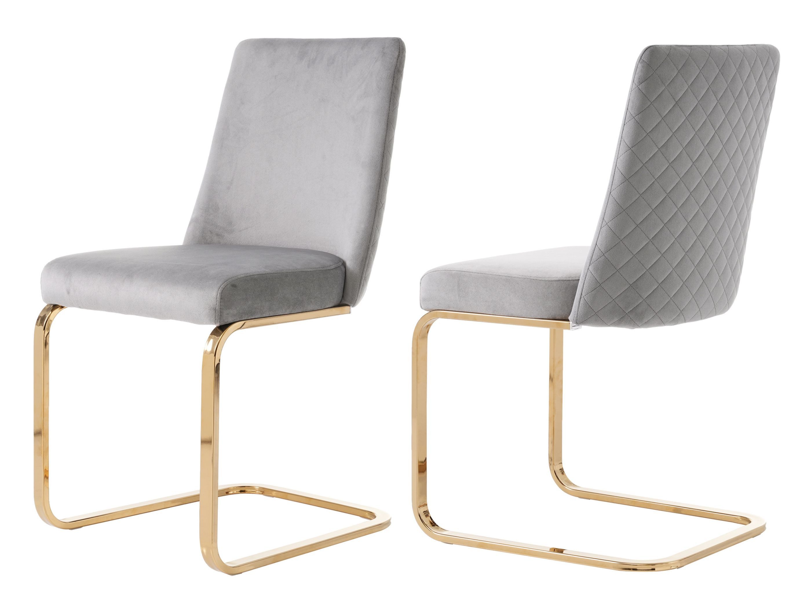 Material: Samtstoff, Schaumstoff, Metall Stühle Maße: 45 cm x 52 cm x 88 cm Gewichtskapazität: 150 kg Lieferumfang: Stühle 2er set / 4er set , Montageanleitung, Montagematerial