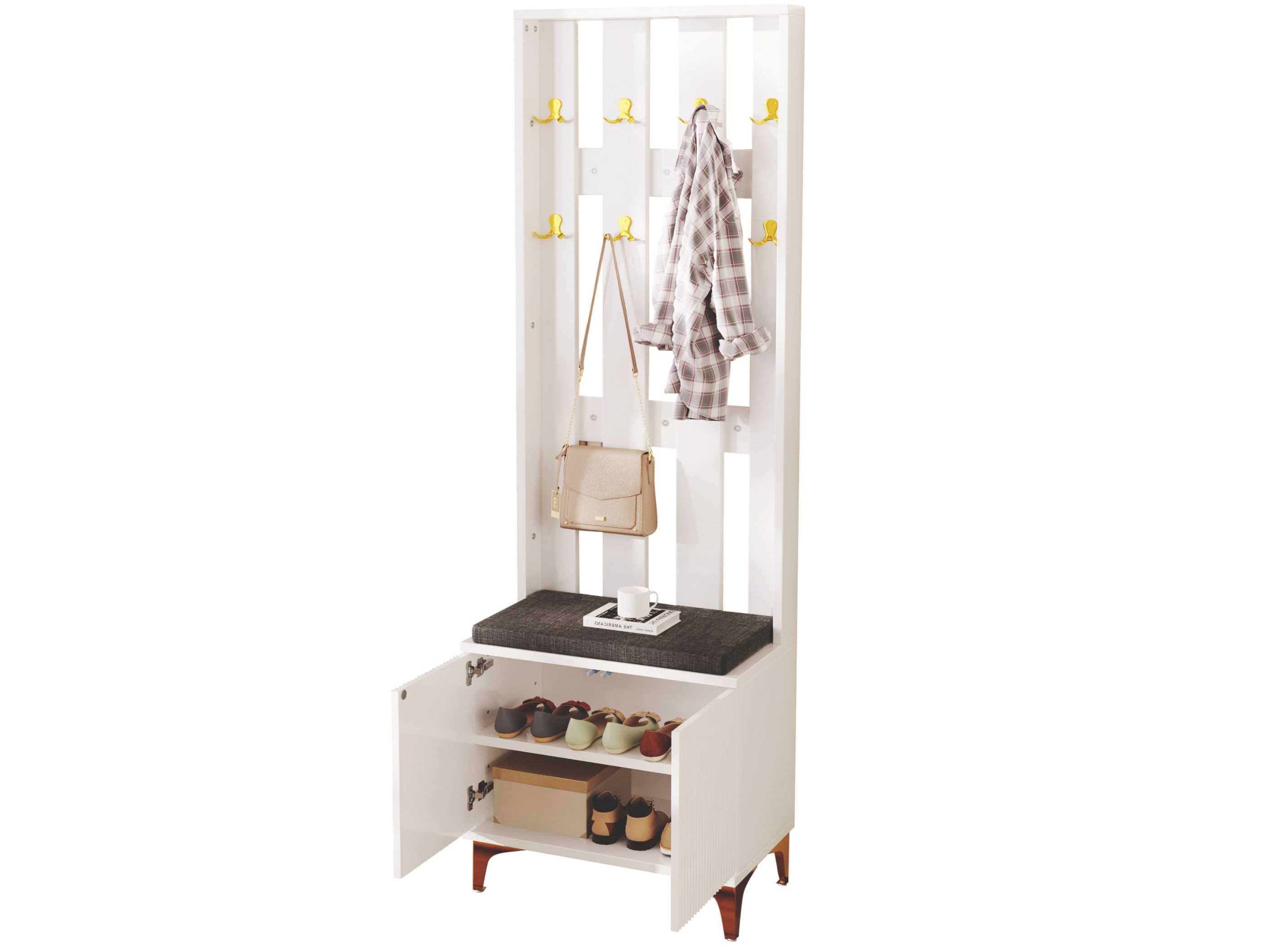 3-in-1 Funktionsdesign: Nutzen Sie den gesamten Platz in Ihrem Flur optimal mit dieser praktischen Kombination aus Garderobe, Schuhschrank und gepolsterter Bank. Всеs an einem Ort für eine ordentliche, stilvolle und funktionale Lösung, die Ihre Bedürfnisse erfüllt.
