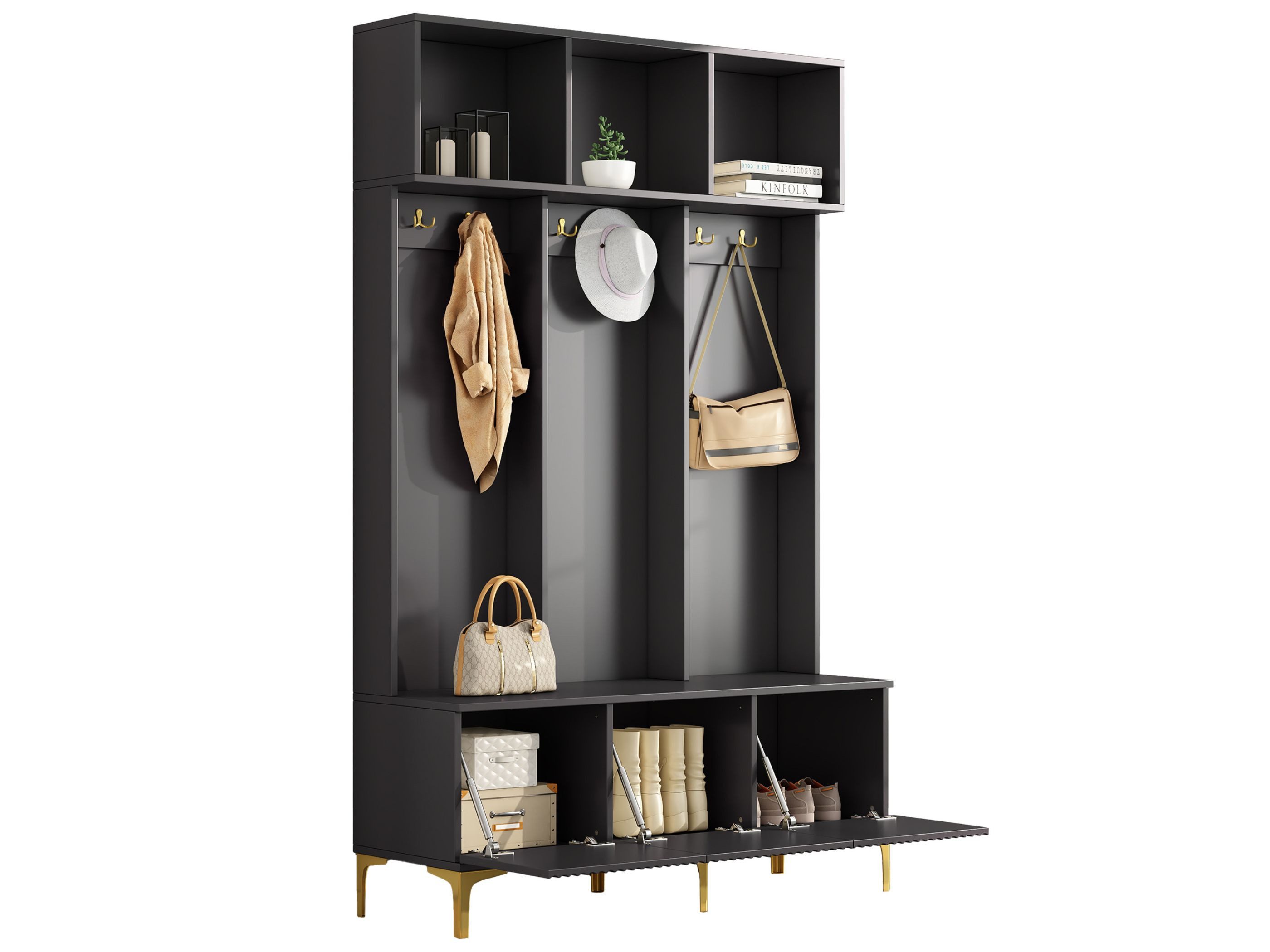 Multifunktionales 3-in-1-Design: Vereint Garderobe, Schuhschrank und Aufbewahrung für Platzersparnis.