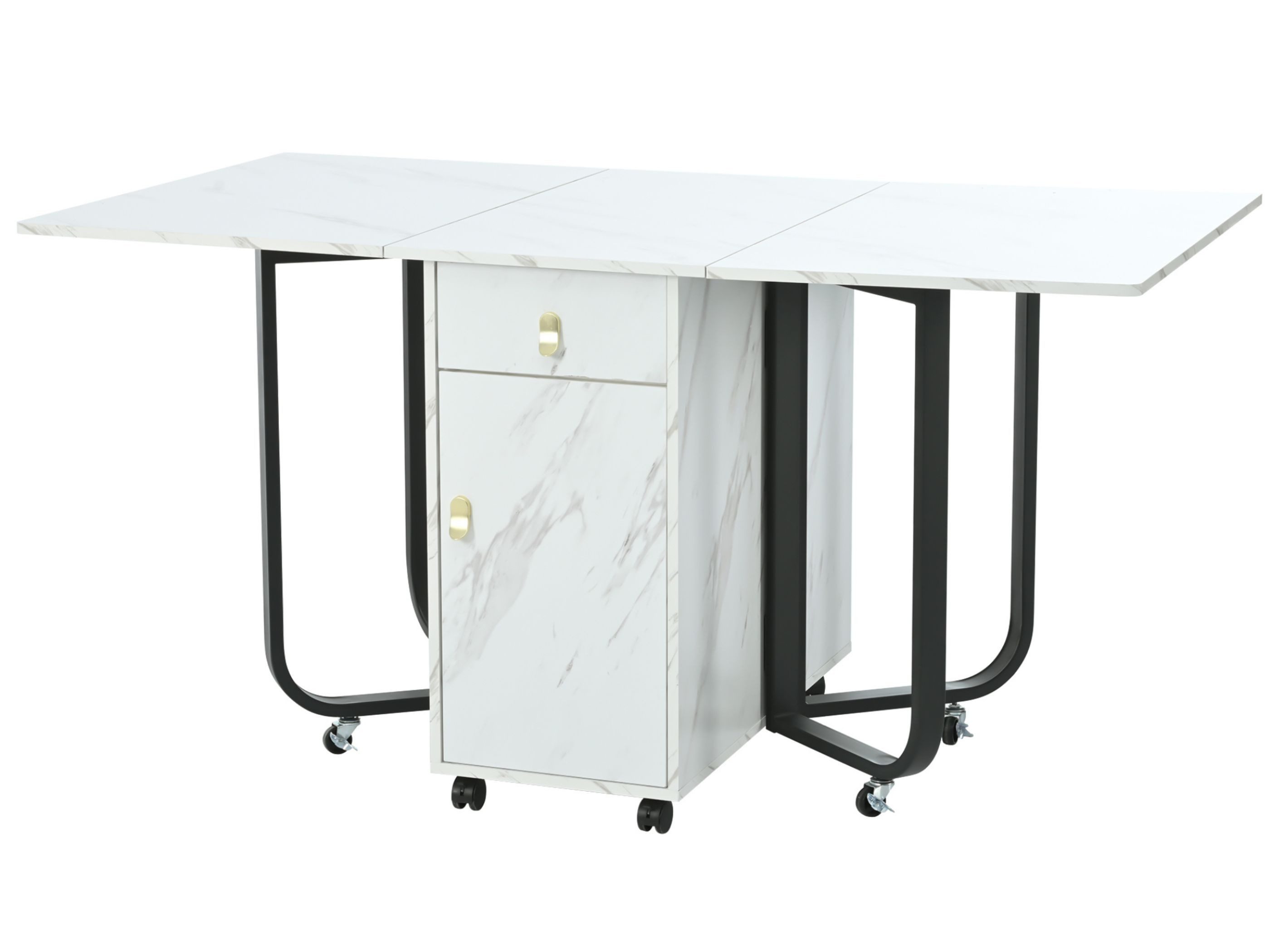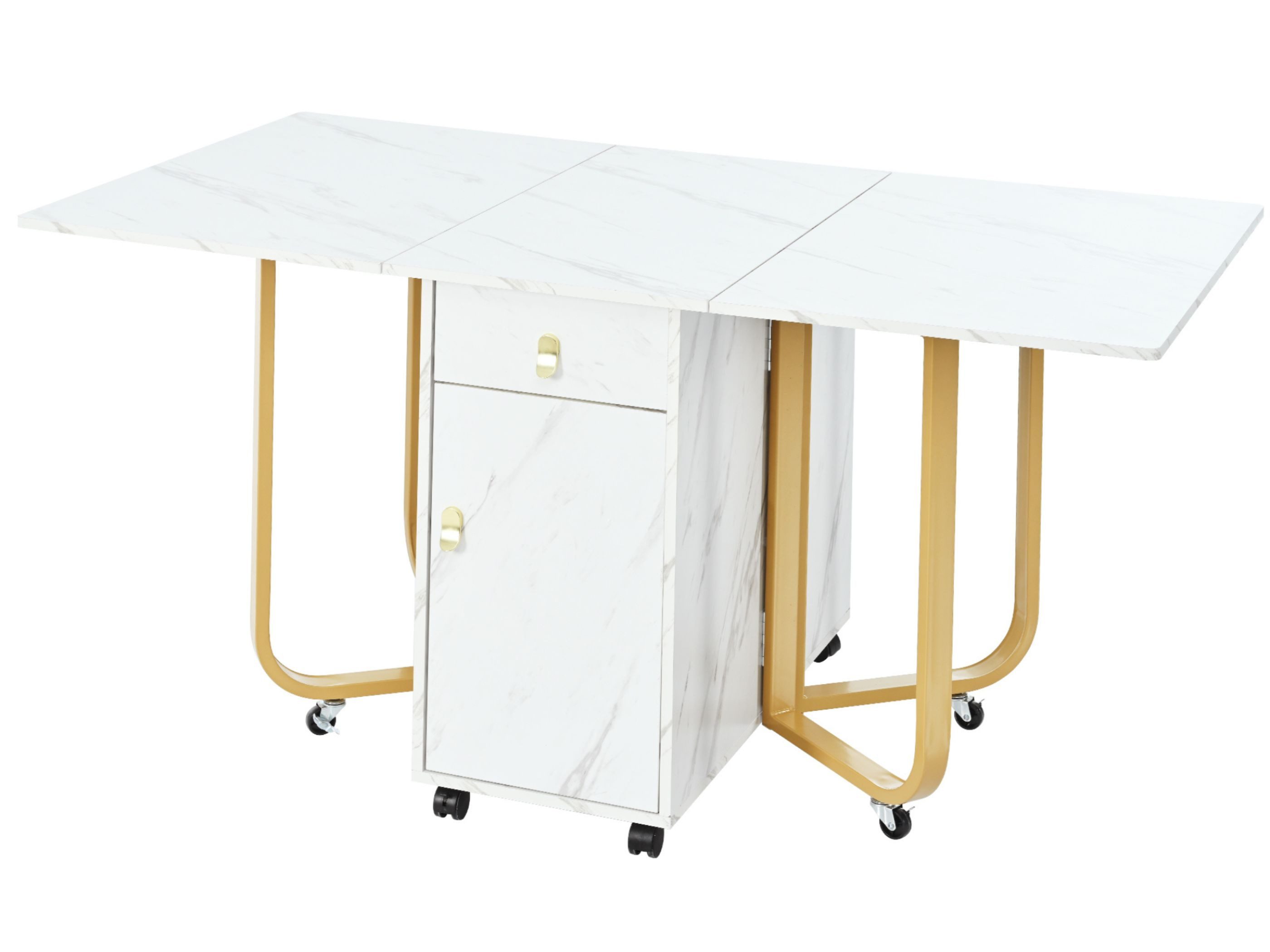 Erleben Sie Eleganz und Funktionalität mit dem SeedWave Esstisch mit Marmortextur. Ideal für jedes Esszimmer, lässt sich dieser vielseitige Tisch auf 150cm verlängern und bietet Platz für bis zu 6 Personen. Bei Nichtgebrauch kann er auf kompakte 43x80x76cm zusammengeklappt werden und ist leicht zu verstauen. Die Rollen tragen bis zu 60kg und ermöglichen eine einfache Bewegung ohne Hindernisse. Geräumige Schubladen und Regale bieten viel Stauraum und maximieren die Raumnutzung. Die glatte Marmortextur verleiht einen Hauch von Raffinesse, und die mühelose Montage sorgt dafür, dass der Tisch in nur 20 Minuten aufgebaut ist.