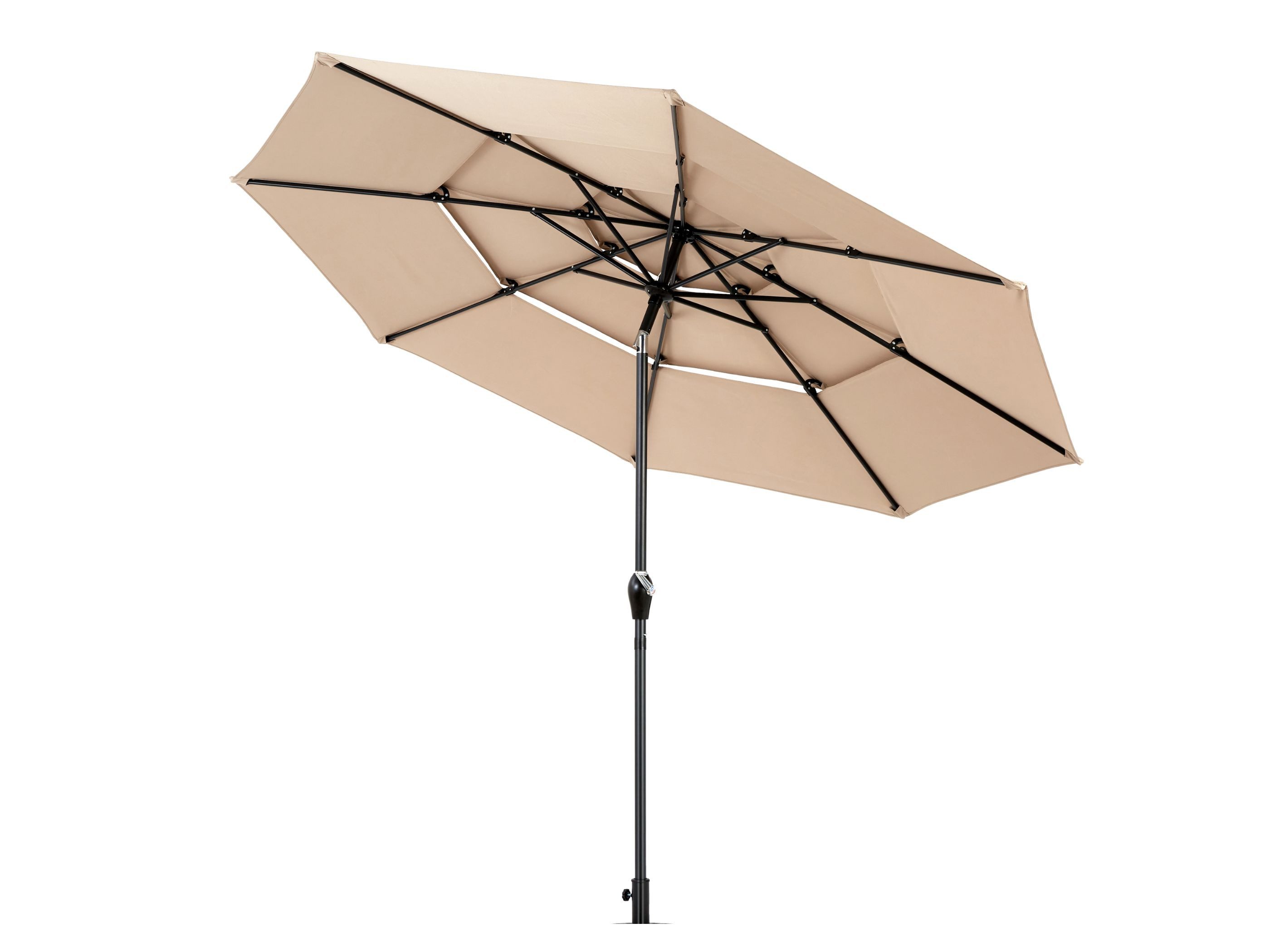 Dreischichtige Struktur für Windbeständigkeit: Das dreilagige Design (groß, mittel, klein) hilft, den Wind effizient zu verteilen. Diese einzigartige Struktur sorgt dafür, dass der 295x295 cm Schirm auch bei starkem Wind standhält und hervorragende Stabilität bietet, selbst an windigen Tagen.