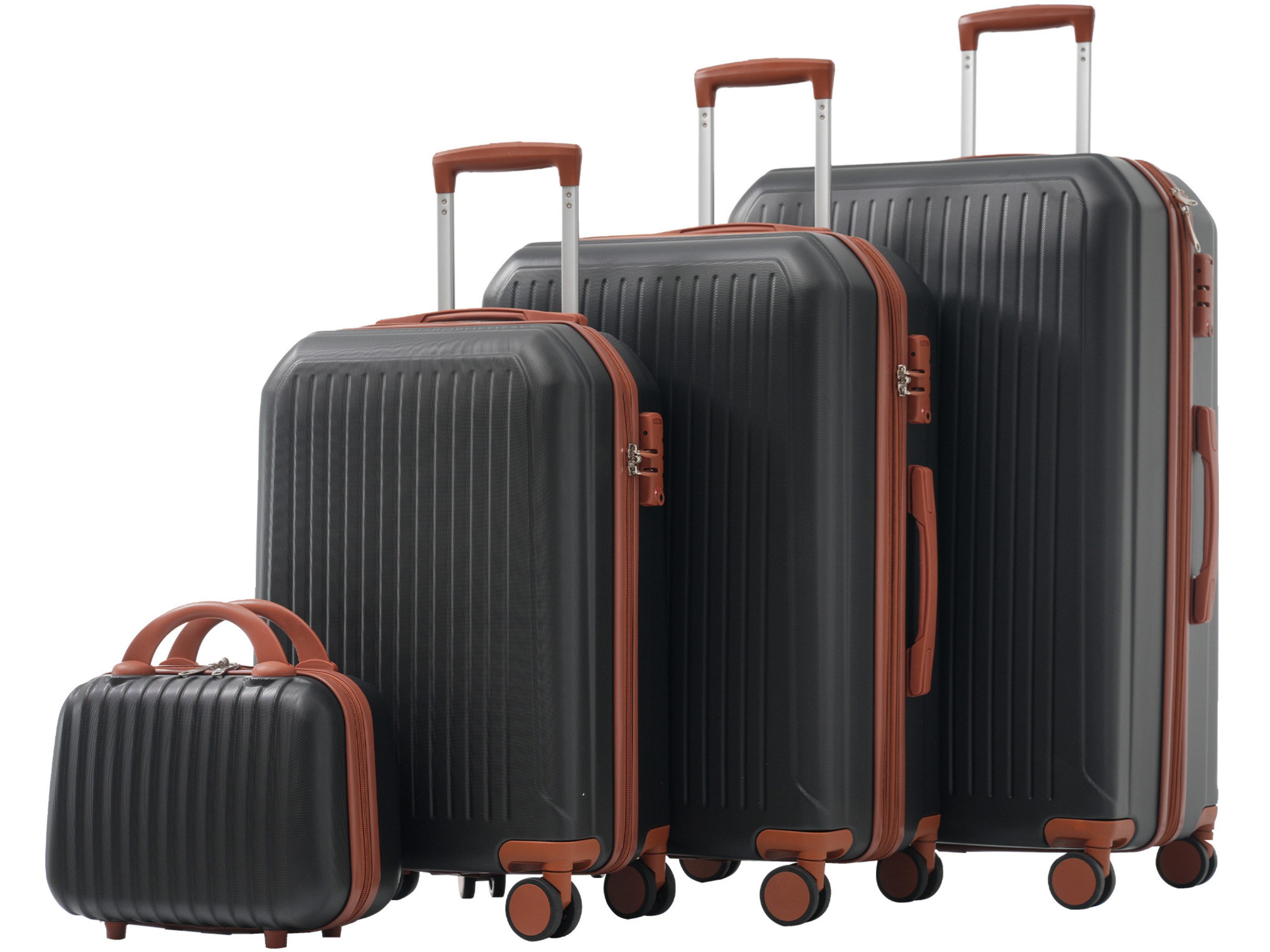 Material: ABS Maße: Размер M: 34(L) × 22(B) x 54(H) cm; Размер L: 38(L) × 26(B) x 65(H) cm; Размер XL: 45(L) × 30(B) x 74 (H) cm; Handkoffer in Große S: 30(L) × 15 (B) x 23(H) cm Produktgewicht: 10,8 KG Lieferumfang: Rollkoffer ×3 (20"×1, 24"×1, 28"×1), Handkoffer ×1 (14"×1) Montageanleitung