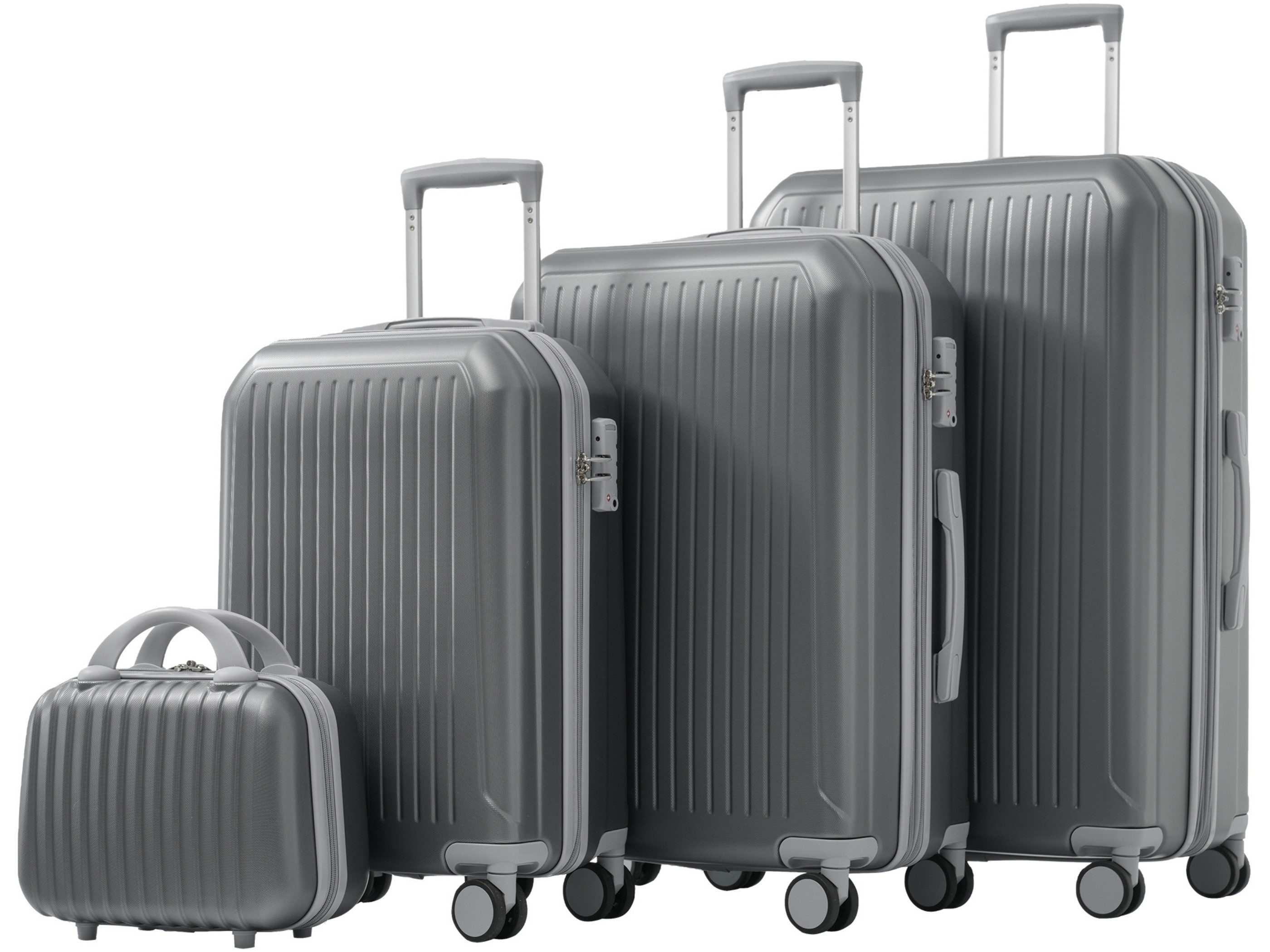 Dieses 4-teilige Kofferset kombiniert modernes Design mit praktischer Funktionalität für jede Reise. Hergestellt aus robustem ABS-Material sind die Koffer nicht nur stoßfest, sondern auch angenehm leicht. Die Ausstattung umfasst ein Teleskopgestänge aus Metall, Oben-Tragegriffe bei allen Größen sowie bei L und XL zusätzlich seitliche Griffe und stabile Stützfüße. Все Koffer sind mit TSA-Schlössern versehen und bieten ein durchdachtes Innenleben mit drei Fächern. Die Koffergrößen M, L und XL sind mit wendigen 360°-Doppelrollen ausgestattet – für komfortables Rollen in alle Richtungen. Besonders praktisch: L und XL lassen sich bei Bedarf durch eine Erweiterungsschicht per Reißverschluss vergrößern. Ob Kurztrip oder Langstrecke – dieses Set passt sich flexibel an Ihre Reisepläne an.