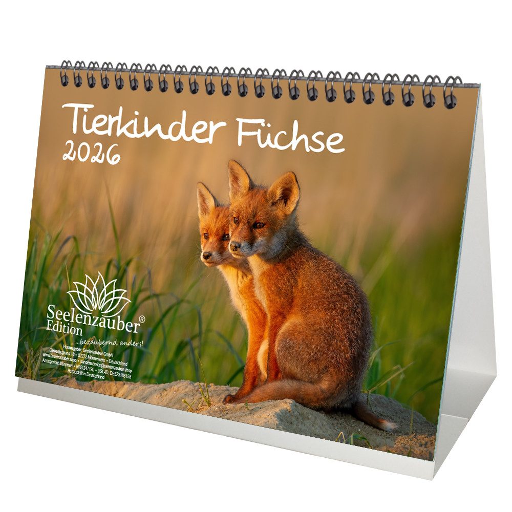 Seelenzauber Tischkalender Tierkinder Füchse DIN A5 Tischkalender für 2026 Fuchs und Füchse