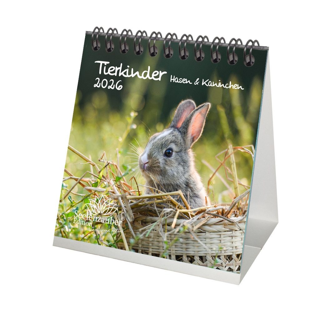 Seelenzauber Tischkalender Tierkinder Hasen und Kaninchen Tischkalender 10cm x 10cm für 2026