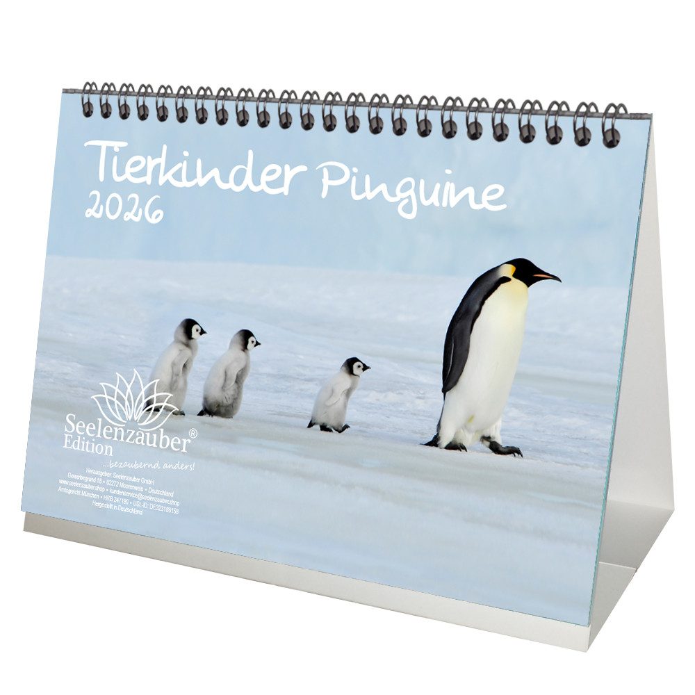 Seelenzauber Tischkalender Tierkinder Pinguine DIN A5 Tischkalender für 2026 Pinguin Seelenzauber