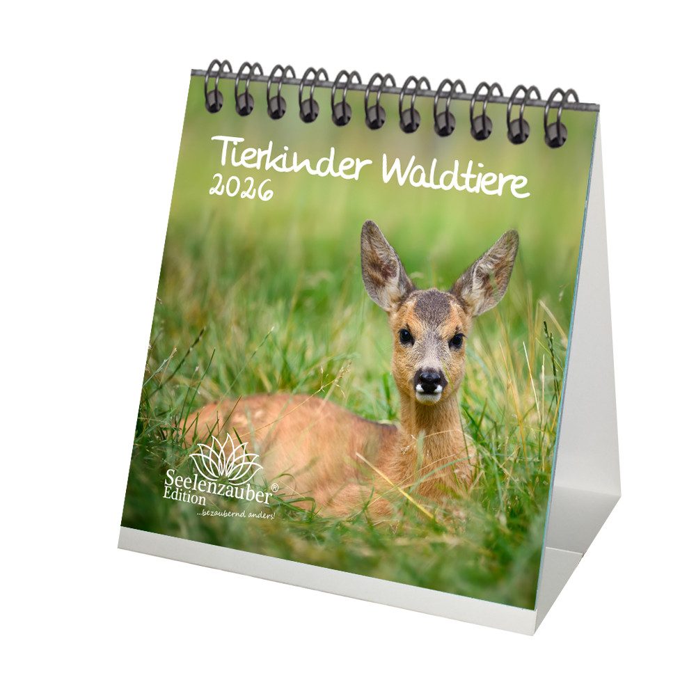 Seelenzauber Tischkalender Tierkinder Waldtiere Tischkalender 10cm x 10cm für 2026 Tiere im Wald