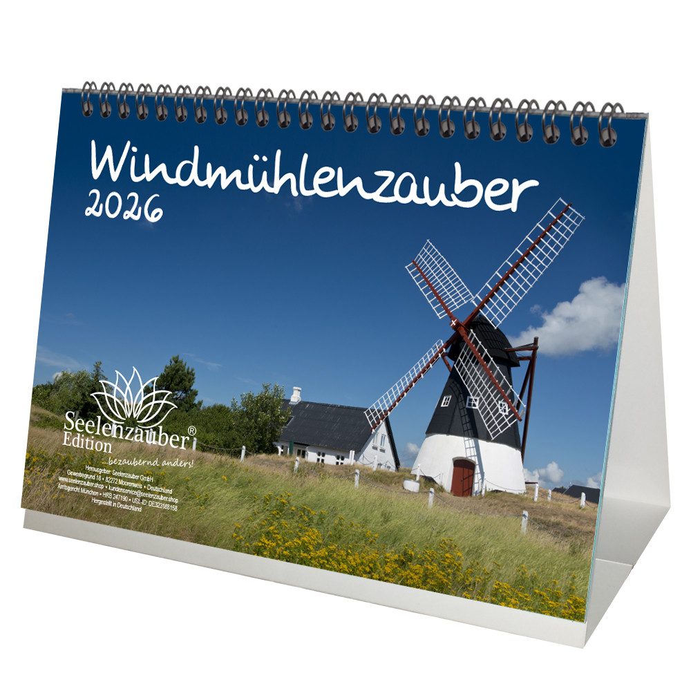 Seelenzauber Tischkalender Windmühlenzauber DIN A5 Tischkalender für 2026 Brücke Windmühlen