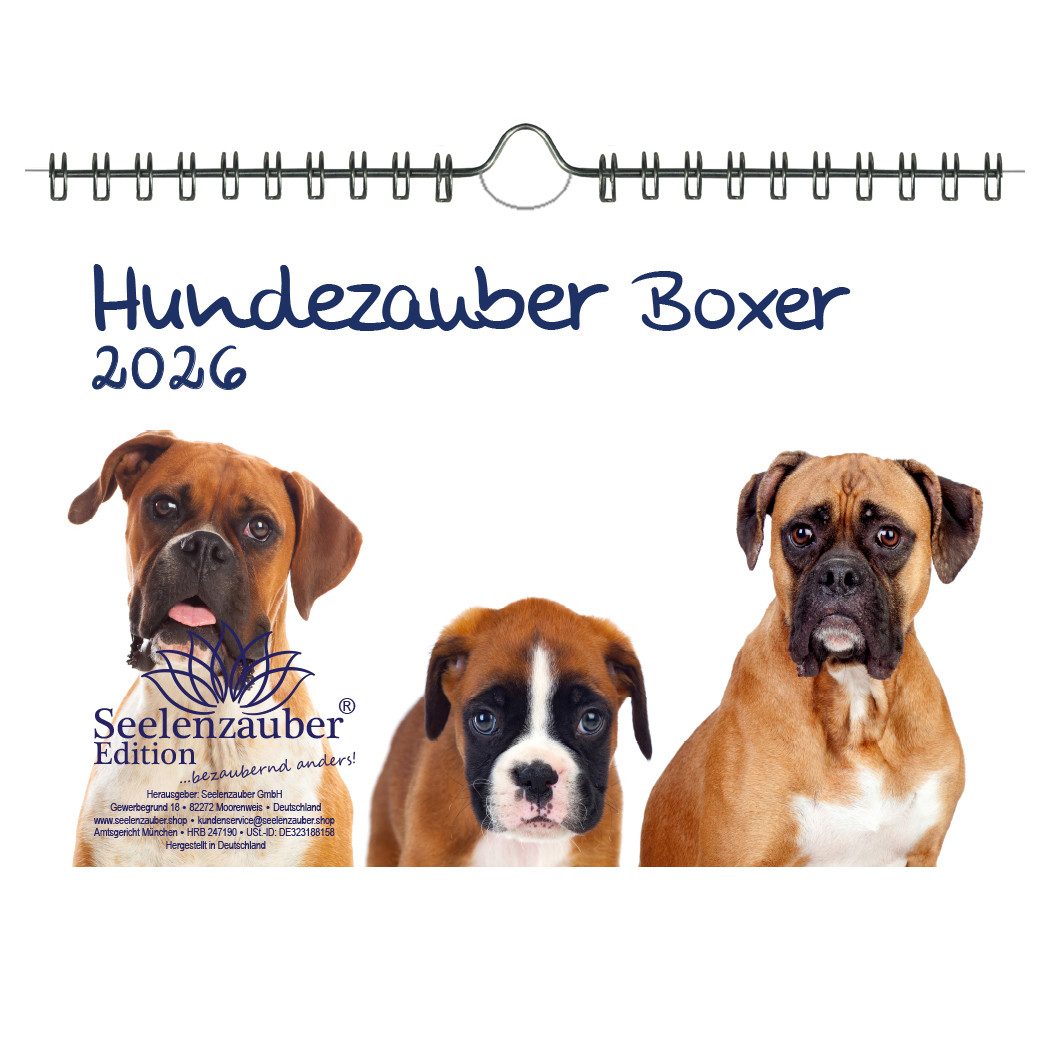 Seelenzauber Wandkalender Hundezauber Boxer DIN A5 Kalender für 2026 Welpen und Hunde