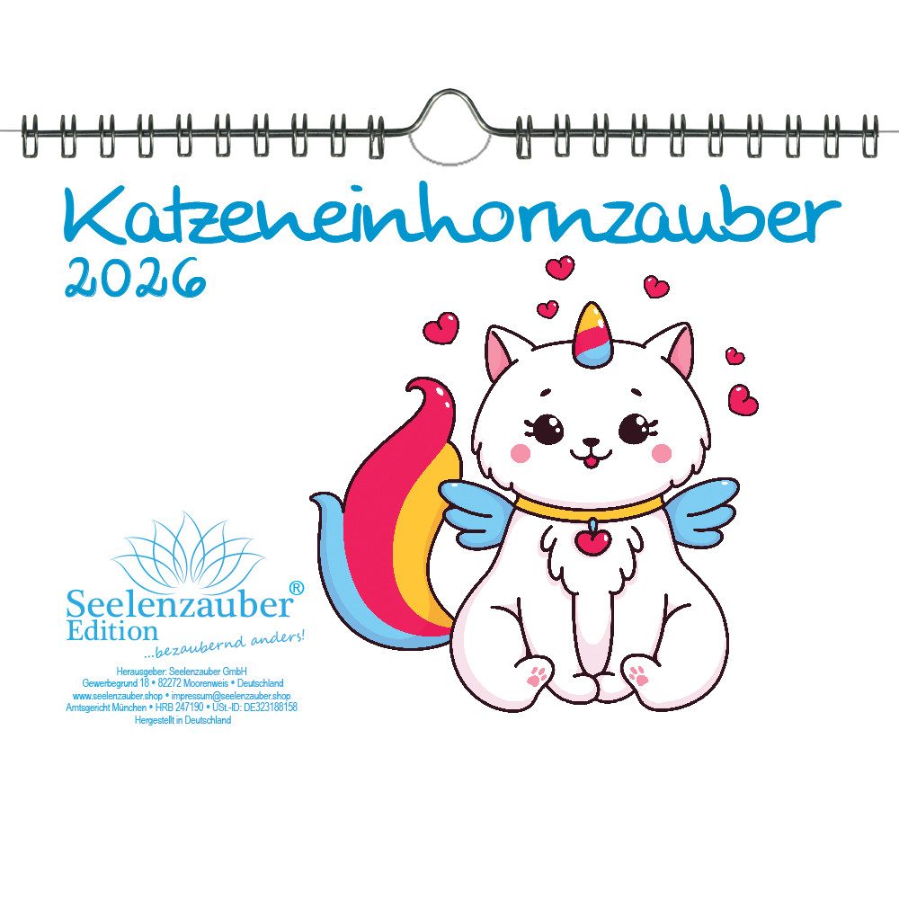 Seelenzauber Wandkalender Katzeneinhornzauber DIN A5 Kalender für 2026 Katzen Einhorn Katzenbaby