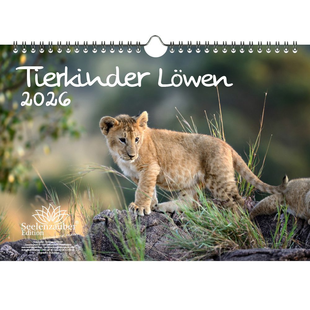 Seelenzauber Wandkalender Tierkinder Löwen DIN A4 Kalender für 2026 Löwenbabys - Seelenzauber