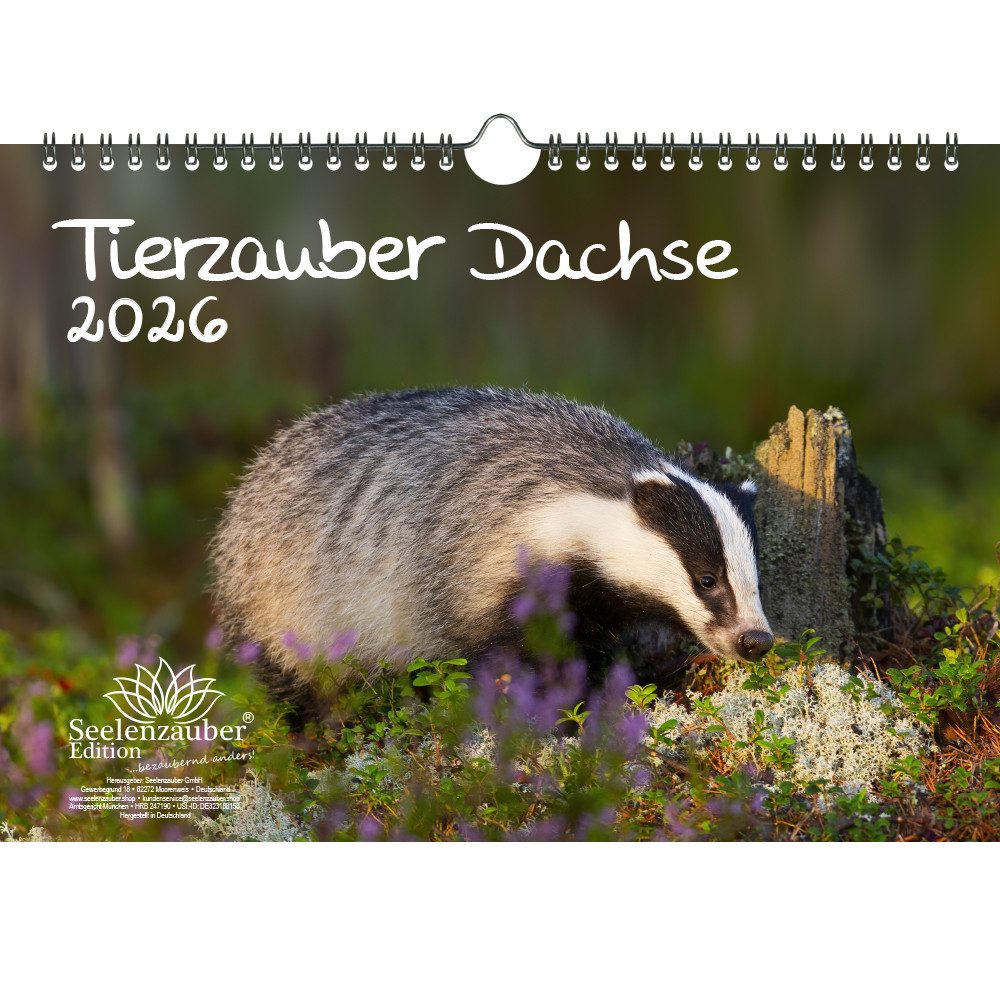Seelenzauber Wandkalender Tierzauber Dachse DIN A4 Kalender für 2026 Wald Natur - Seelenzauber