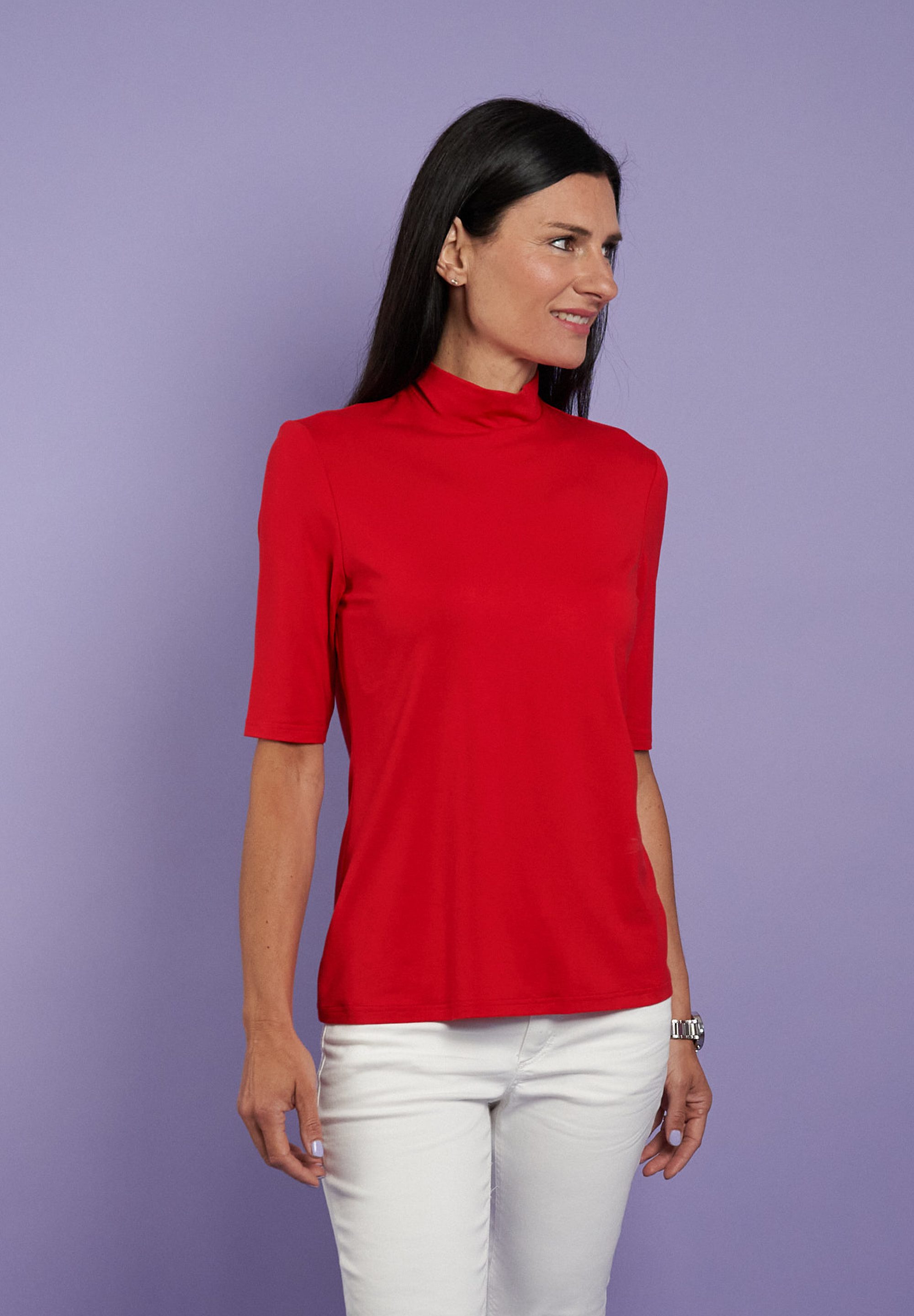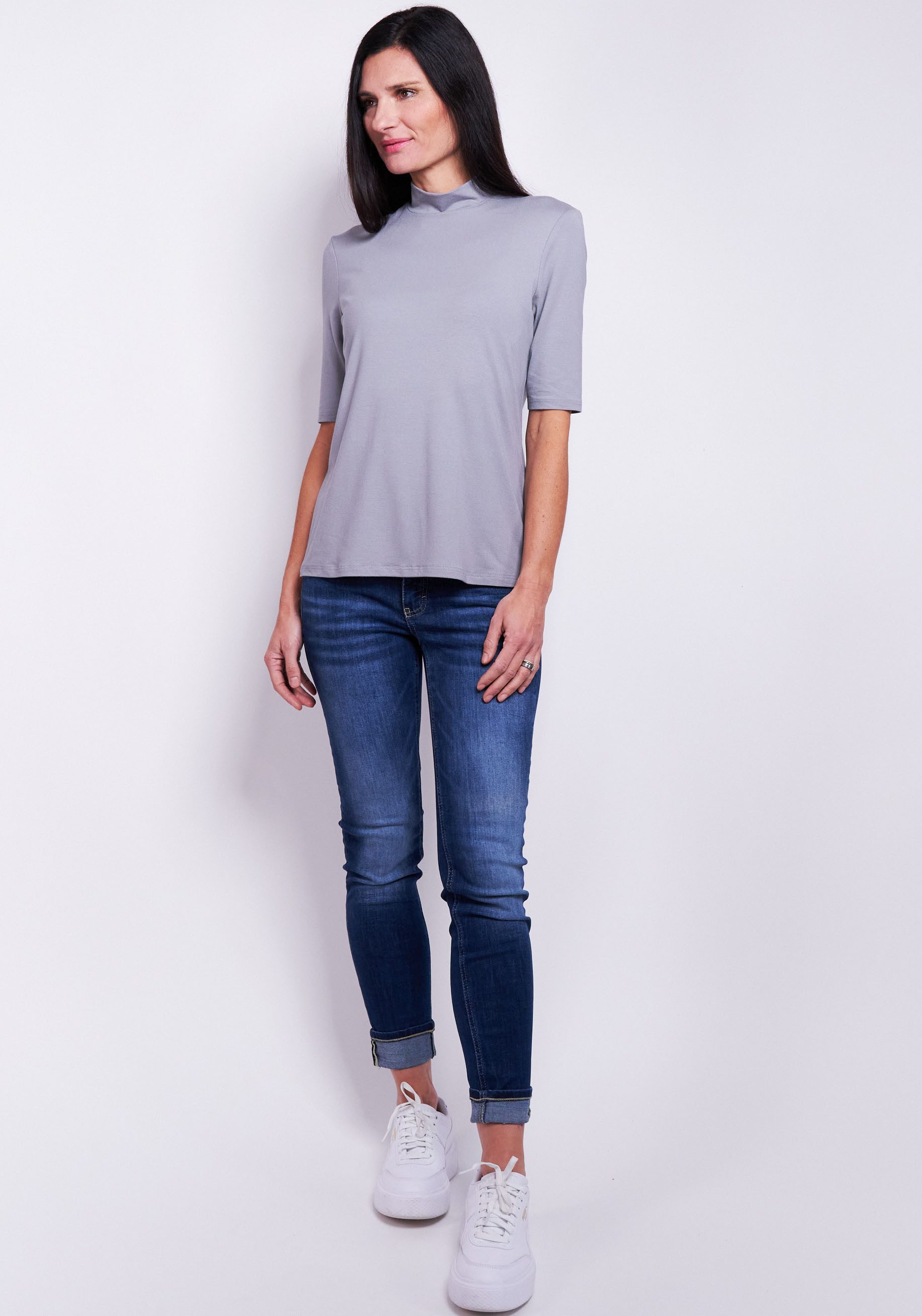 Mit dem Stehkragenshirt von Seidel Moden lassen sich einfach neue Outfits kombinieren. Der Stehkragen steht nach oben und liegt am Hals an, wodurch du seriöse und toughe Outfits kombinieren kannst. Dieses Shirt hat einen Rundhalsausschnitt und ist hüftlang sowie figurumspielend geschnitten, sodass du dich wohlfühlst.