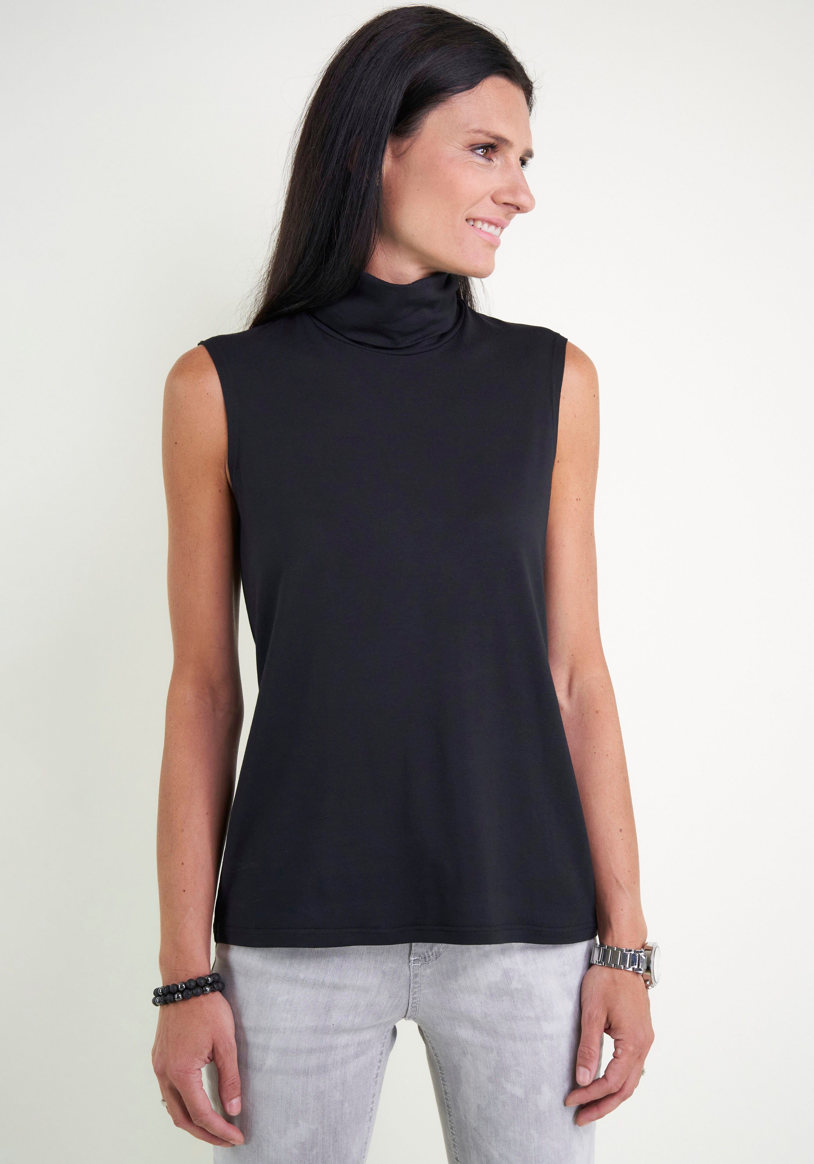 Mit dem Tanktop von Seidel Moden stellst du im Handumdrehen ein neues Outfit zusammen. Der Rollkragen wird am Hals umgeschlagen und sieht schlauchartig aus. Er wärmt deinen Hals und umrahmt gleichzeitig dein Gesicht. Dieses Top hat einen Rundhalsausschnitt und ist hüftbedeckend sowie figurumspielend geschnitten, sodass du dich wohlfühlst.