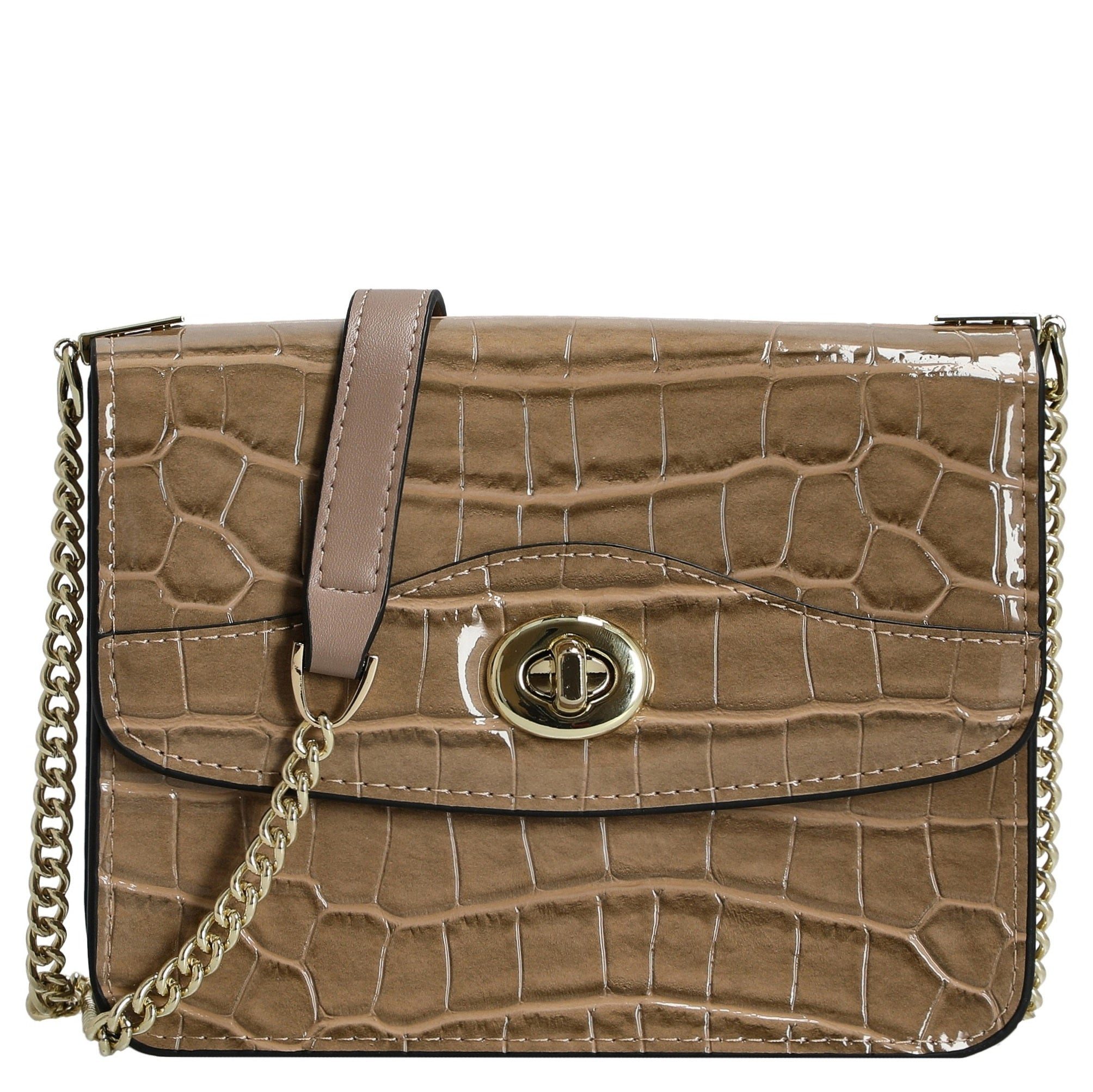 Elegantes Design: Die Umhängetasche besticht durch ihre schicke Form und das glänzende Material