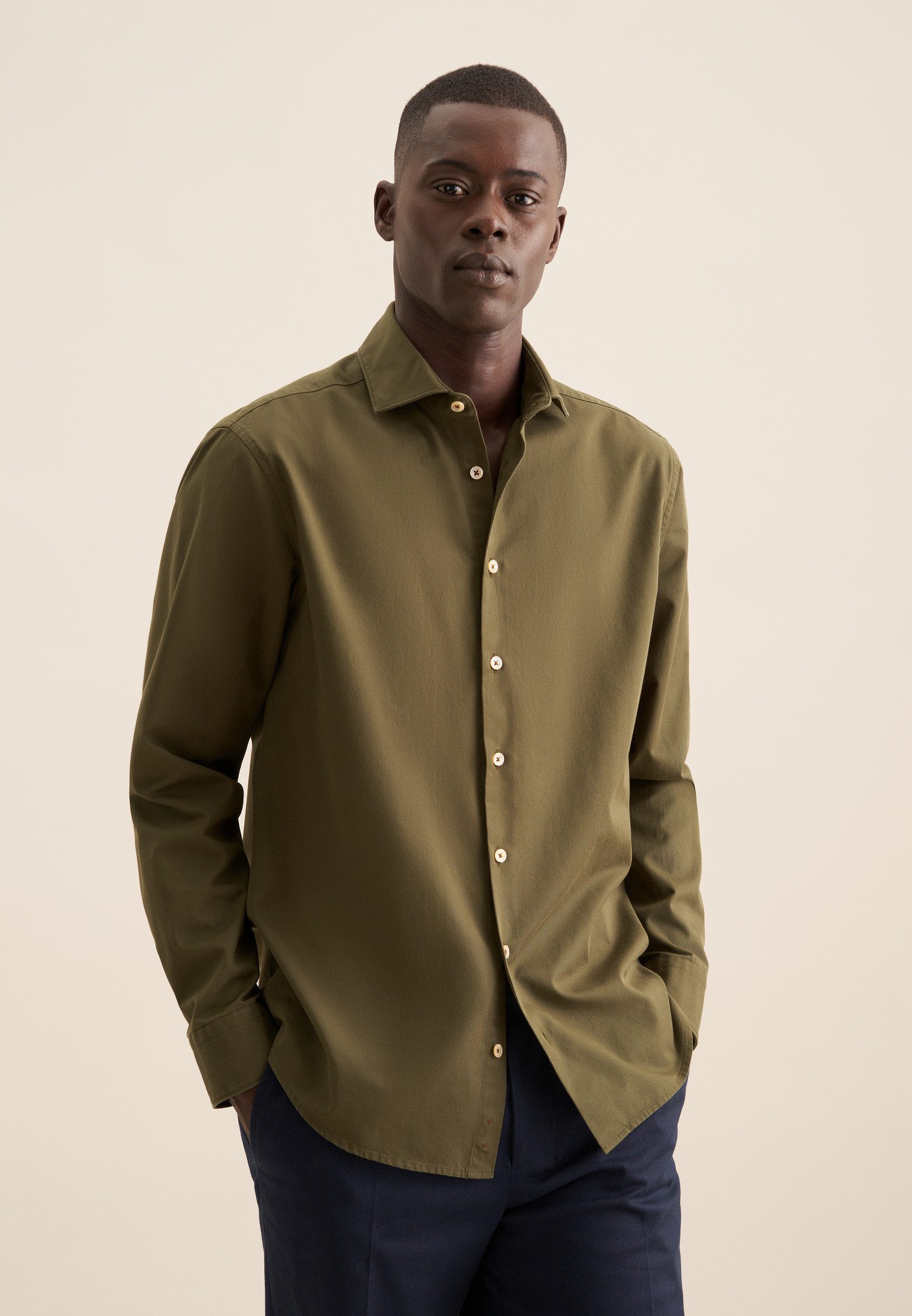 Maskuline Ästhetik: Das Casual Hemd von Seidensticker aus der "SMART CASUAL" Kollektion erweitert Ihre Garderobe um ein vielseitig einsetzbares Kleidungsstück. Es kann in der Freizeit, im Homeoffice, im Büro oder bei Veranstaltungen getragen werden. Die Webart Twill aus 100% Baumwolle ist besonders hochwertig gewebt, was sie bequem zu tragen und mit schräg umlaufender Struktur außerordentlich griffig macht. Im klassisch-geraden Regular Schnitt bietet das Casual Hemd höchsten Tragekomfort und liegt weniger eng an. Balanceakt zwischen klassischem Look und modernen Aspekten: das smarte Seidensticker Hemd. Bei diesem Langarm-Casual Hemd werden Stilsicherheit und Eleganz hervorgehoben. Weitenverstellbare Manschetten perfektionieren das Gesamtbild. Besonders hervorgehoben wird der universelle Business-Charakter durch einen Kentkragen. Эко-товары ist uns sehr wichtig - dieses Casual Hemd entspricht daher unseren hohen Ansprüchen an verantwortungsvolle Rohstoffe, soziale Verantwortung, eine nachhaltige Herstellung, sowie eine plastikfreie Verpackung.