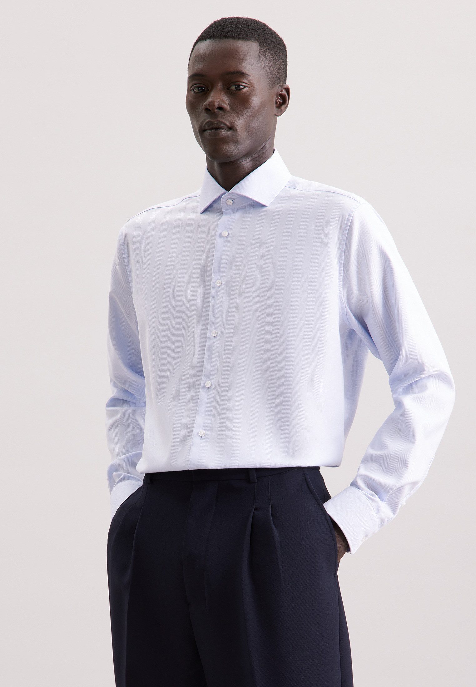 Vervollständigt Ihr Outfit und sollte in keiner Garderobe fehlen: Dieses 1/1-Business Hemd aus der "SMART CLASSICS" Kollektion von Seidensticker überzeugt durch maskuline Ästhetik. Ob Büro, Veranstaltungen oder Homeoffice - es ist ein eleganter Klassiker, der sich leicht kombinieren lässt. Im klassisch-geraden Regular Schnitt bietet das Business Hemd hohen Tragekomfort und liegt nicht so eng an. Das attraktive Fischgrat-Muster verleiht dazu die passenden modischen Nuancen. Balanceakt zwischen klassischem Look und modernen Aspekten: das smarte Seidensticker Hemd. Hervorragend herausgearbeitet wird der universelle Business-Charakter durch einen Kentkragen.