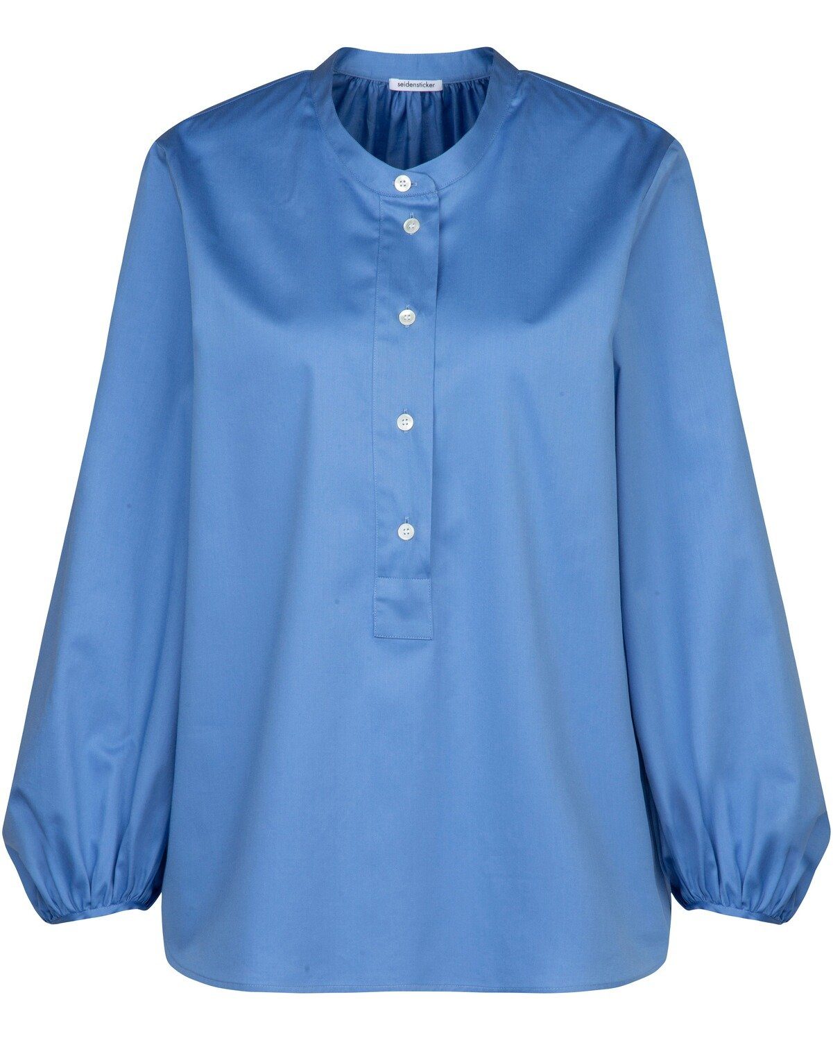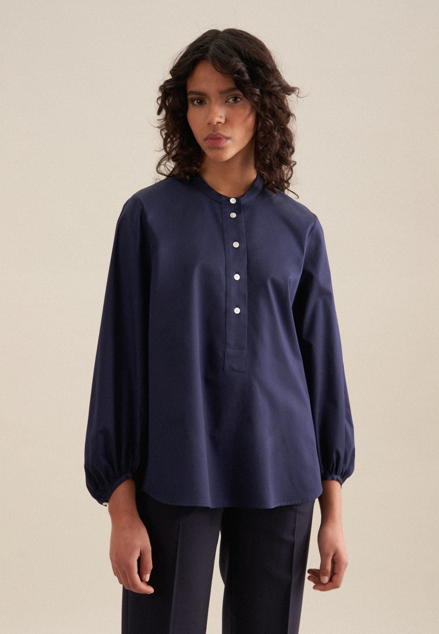 Feminin und elegant: Die Stehkragenbluse von Seidensticker aus der "The Contemporary Basics" Kollektion erweitert Ihre Garderobe um ein vielseitig einsetzbares Kleidungsstück. Sie ist ein vielseitiger Begleiter, der sich ideal für das Büro eignet und zu jeder Gelegenheit getragen werden kann. Der besonders hochwertig gewebte Twill ist aus 100% Baumwolle, komfortabel zu tragen und mit schräg umlaufender Struktur außerordentlich griffig. In klassischer Passform bietet die Stehkragenbluse hohen Tragekomfort und liegt nicht so eng an. Das Uni-Muster macht sie zu einem absoluten Must-have. Klassischer Chic gepaart mit modernem Selbstbewusstsein - eine elegante Bluse für viele Gelegenheiten. Bei dieser Langarm-Stehkragenbluse werden Stilsicherheit und Eleganz hervorgehoben. Besonders unterstrichen wird der nostalgisch-smarte Charakter durch einen Stehkragen. Edle Perlmuttknöpfe wirken als dezente Details.