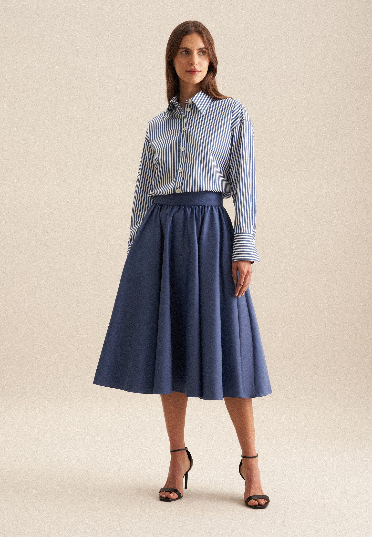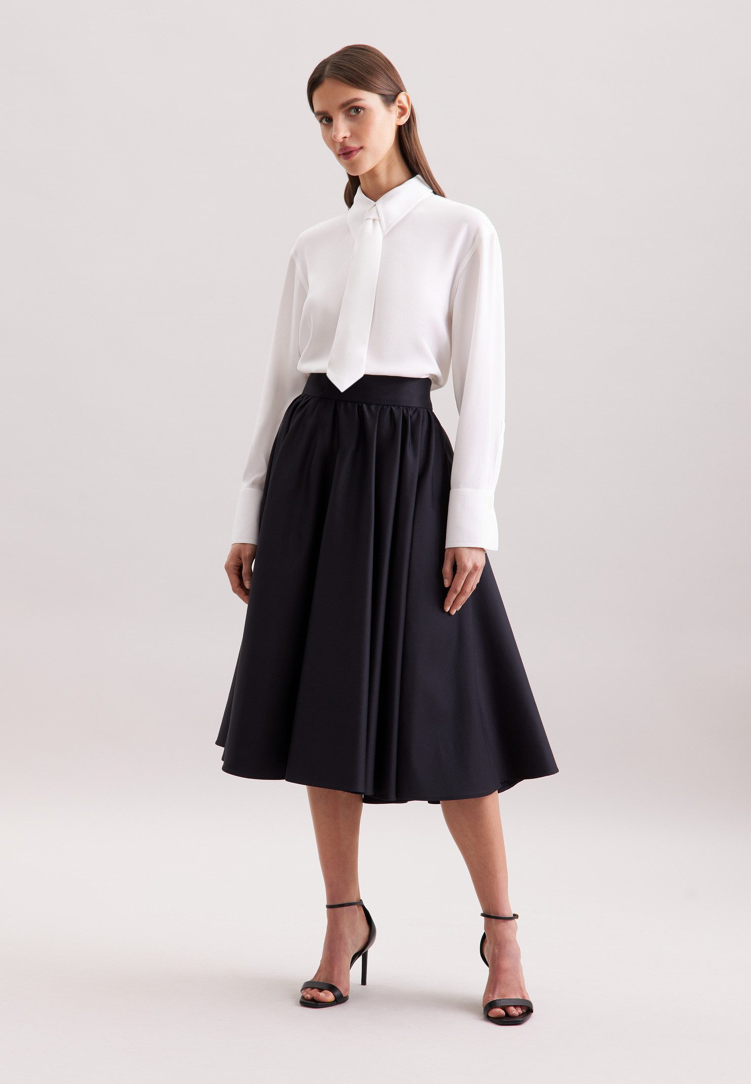 Sehr toller Rock, elegant aber auch täglich tragbar. Schöner breiter Bund, Seitentaschen, fester Stoff, die voluminöse Form des Rockes bleibt bestehen.