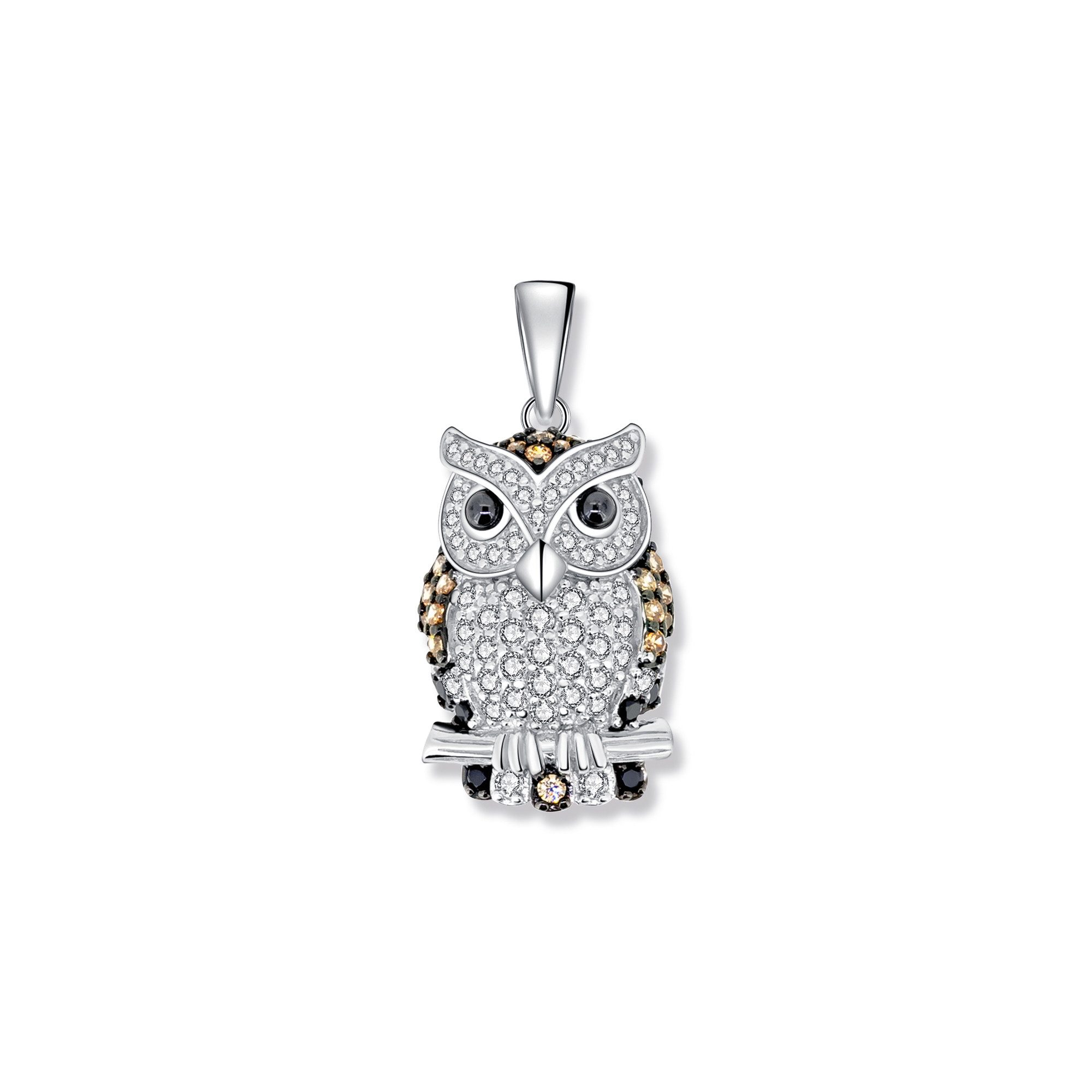 Der Arno Eulen Anhänger ist ein Kunstwerk, das die Anmut der Eulenwelt einfängt. Hergestellt aus hochwertigem 925 Sterling Silber, ist dieser Anhänger ein Symbol für Eleganz und Naturverbundenheit. Die beiden Eulen in Braun und Weiß sitzen anmutig auf einem Ast, als ob sie in der Natur verweilen. Die liebevoll gestalteten Details der Federn und Augen verleihen dem Anhänger eine lebendige Ausstrahlung. Die Zirkonia-Steine in zwei Farben fügen dem Schmuckstück einen funkelnden Glanz hinzu. Die rhodinierte und geschwärzte Oberfläche unterstreicht die Feinheit des Designs und verleiht dem Anhänger eine geheimnisvolle Note. Er kann an einer Kette Ihrer Wahl getragen werden und ist ein Ausdruck Ihrer Liebe zur Natur.