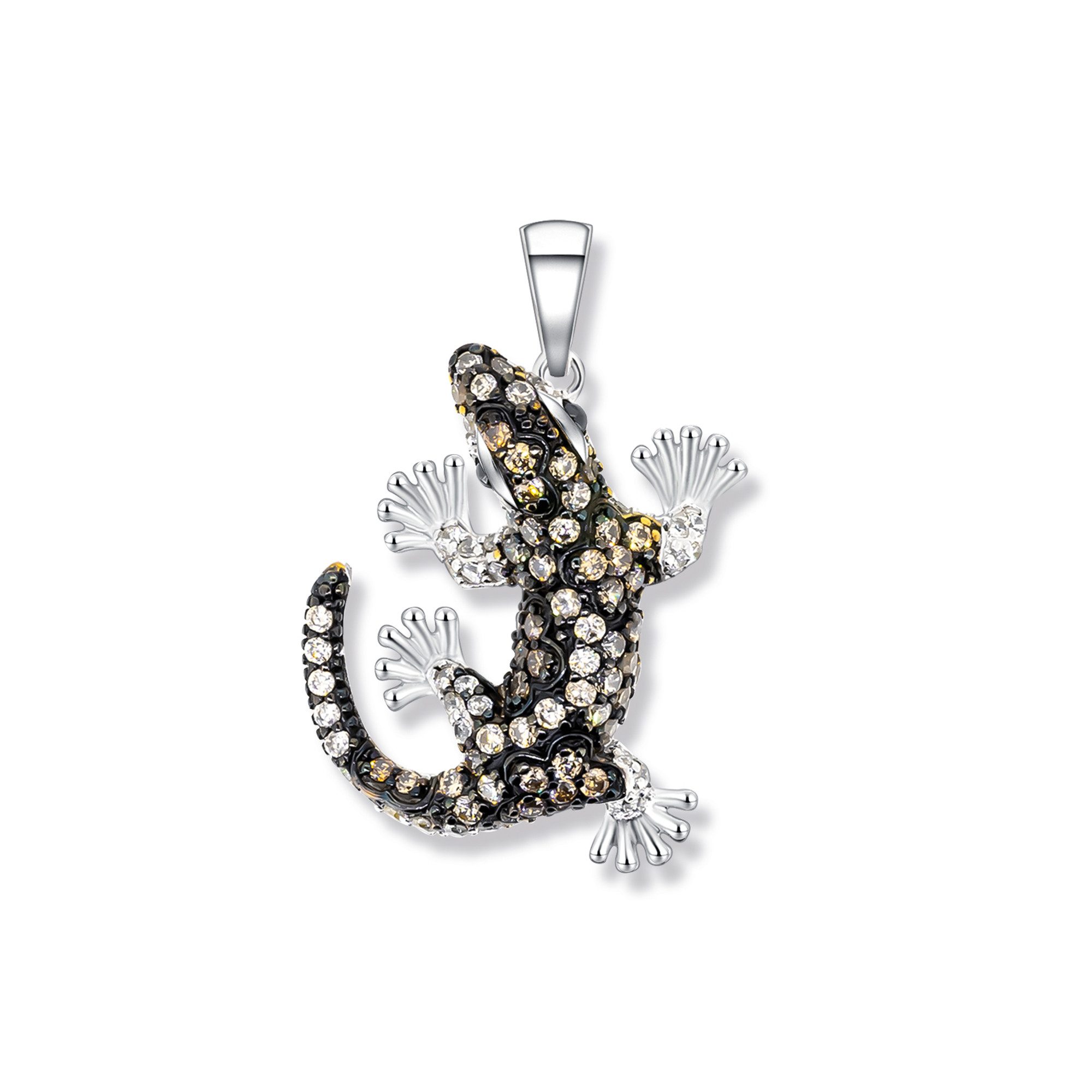 Der Franky Salamander Anhänger zeigt einen kunstvoll gestalteten Salamander in einer Anordnung, die die Anmut und Beweglichkeit des Tieres einfängt. Die geschickt platzierten Zirkonia Steine fügen dem Anhänger einen Hauch von Glanz hinzu, der bei jedem Licht funkelt. Dieser Anhänger ist nicht nur ein Schmuckstück, sondern auch ein Ausdruck Ihres Stils und Ihrer Eleganz.