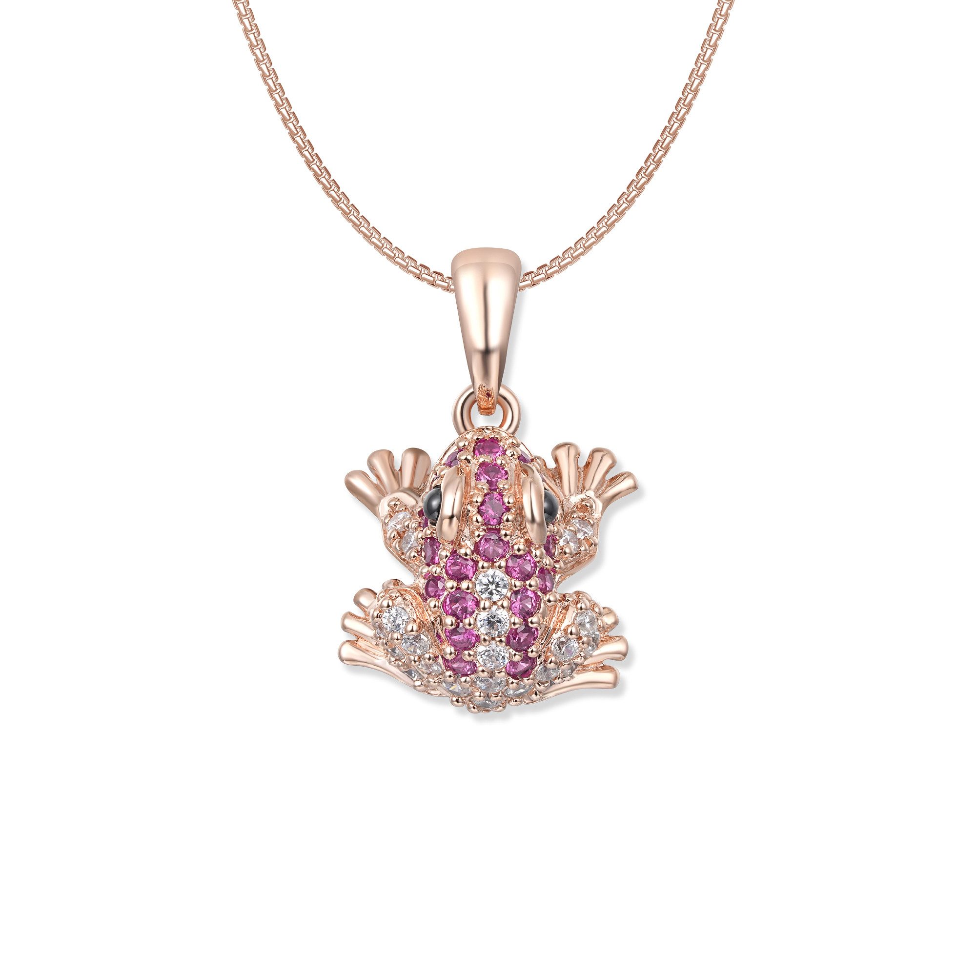 Mit Ivy Pink wird es romantisch, verspielt und dennoch extravagant. Als Teil unserer Fancy Frogs Edition bringt dieser charismatische Frosch nicht nur Farbe, sondern auch eine Prise Glamour in deine Schmuckkollektion. Er stammt aus der Waldleben-Kollektion von SEINERZEIT und verbindet hochwertiges Design mit kultigem Witz. Der Anhänger ist aus 925 Sterling Silber gefertigt und mit einer warmen 18K Rosévergoldung überzogen. Vollständig mit zartrosa Zirkonia besetzt, fängt Ivy Pink das Licht bei jeder Bewegung ein und bringt ein sanftes, feminines Funkeln in deinen Look. Die charmante Pose, der runde Bauch und die ausgestreckten Froschzehen geben dem Anhänger eine fast comicartige Leichtigkeit, die sofort gute Laune verbreitet. Trage Ivy Pink als verspieltes Statement-Piece oder kombiniere ihn mit seinen Geschwistern – Tom Green, Lou Blue und Lex Gold – für einen echten „Fancy Frogs“-Auftritt. Die Fancy Frogs Edition: Tom Green, Lou Blue, Ivy Pink und Lex Gold – vier ikonische Frösche, poppig, kultig, mit augenzwinkerndem Designanspruch. Als Ensemble oder Solo – immer ein Blickfang.