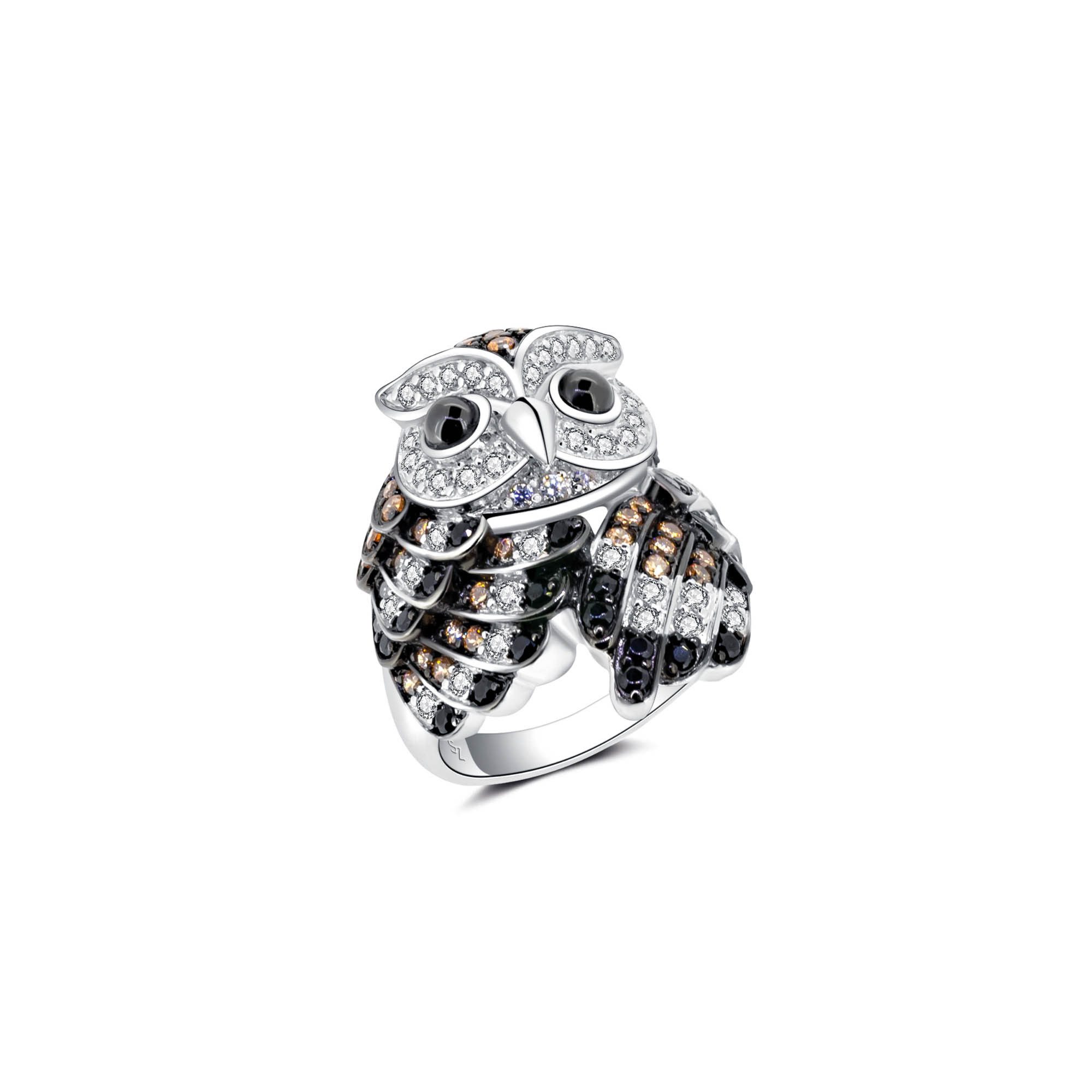 Der Alex Eulen Ring ist ein faszinierendes Schmuckstück, das die Magie der Eulenwelt auf einzigartige Weise einfängt. Dieser Ring ist aus rhodiniertem und geschwärztem 925 Sterling Silber gefertigt und verfügt über funkelnde Zirkonia-Steine in den Farben braun und weiß.