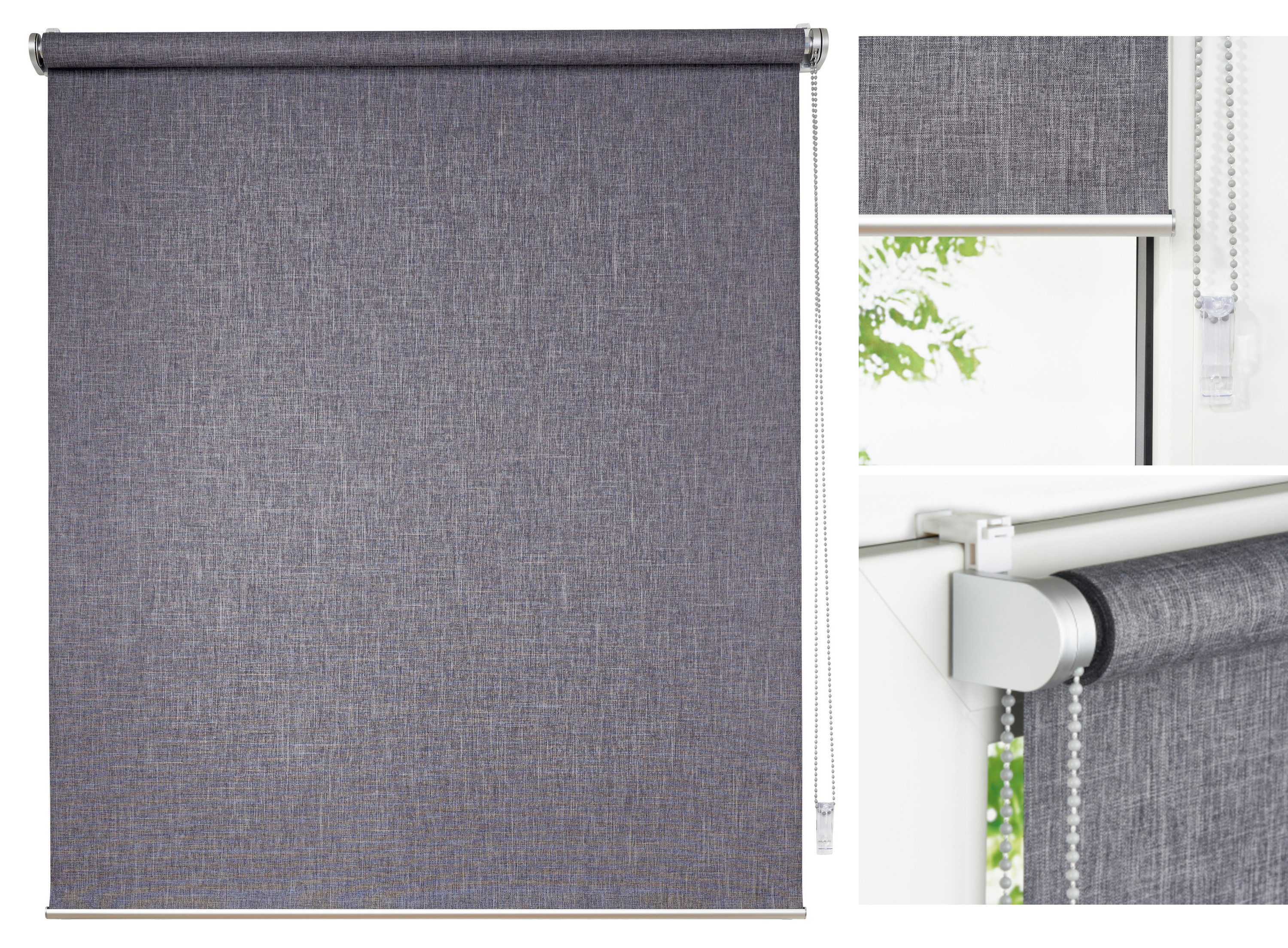 Klemmfix-Rollo, Stufenloses verstellen, Kettenzug und Getriebe wahlweise rechts oder links montierbar, Lichtdurchlässiger und blickdichter Sicht-Sonnenschutz, Montage ohne Bohren