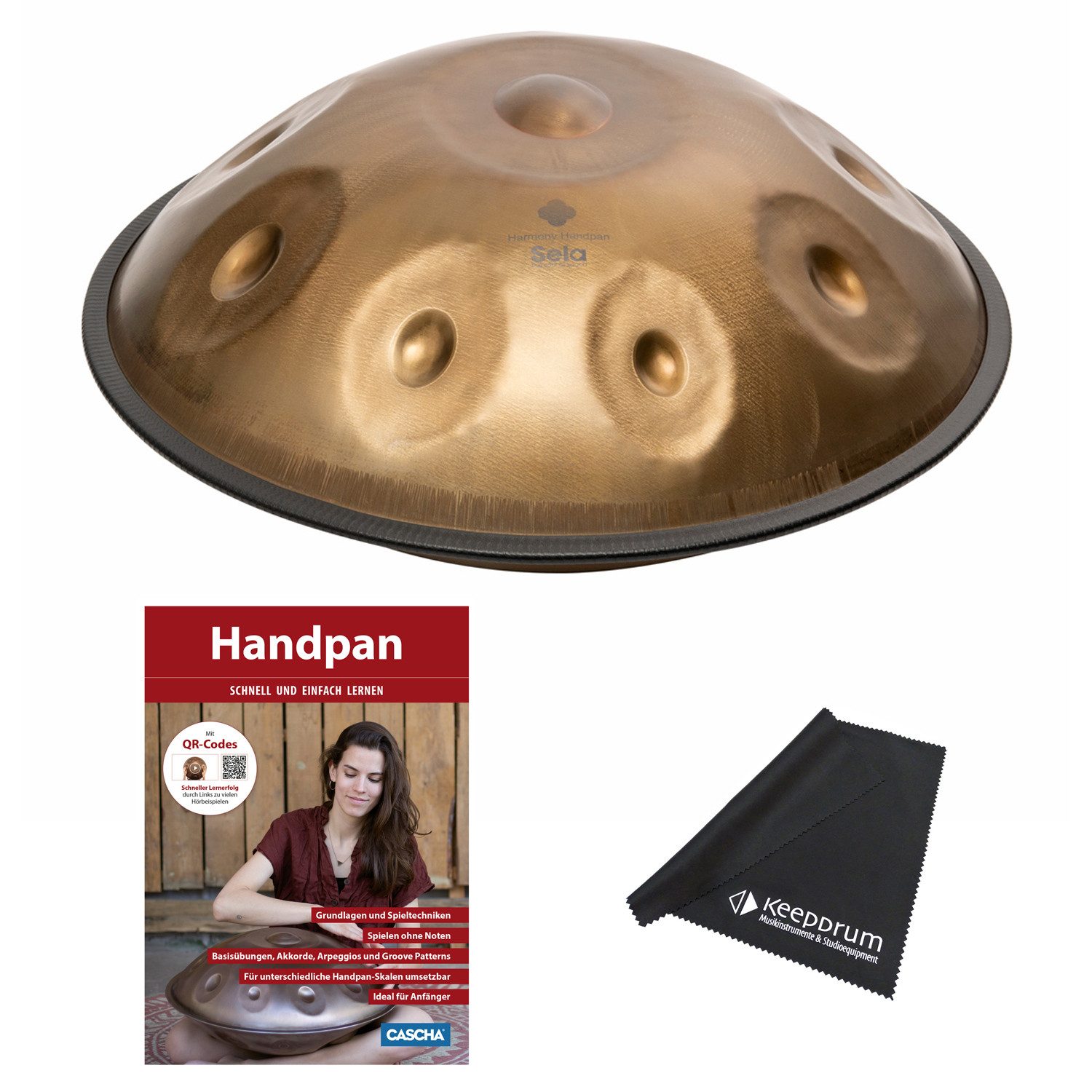 Lieferumfang | Handpan, Tasche, Lehrbuch, Tuch |