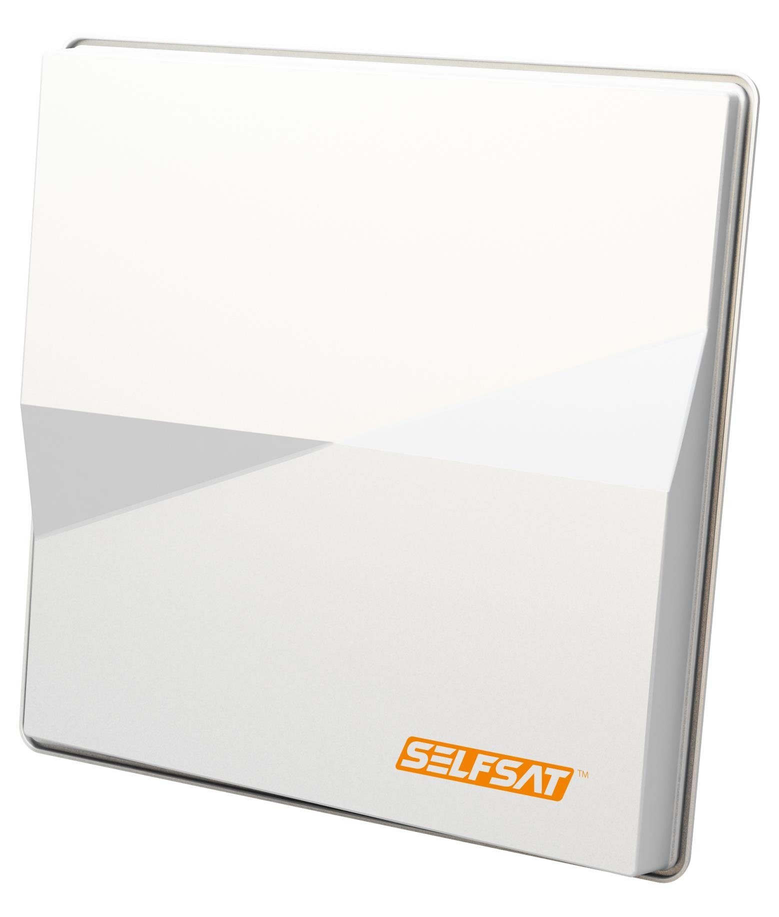 Das ist die neue SELFSAT H50M Flachantenne. Sie ist die weltweit erste flache Satellitenantenne zum Empfang von 2 Orbit-Positionen. Das flache und innovative Design der Antenne sorgt für eine unauffällige Installation an einer Hauswand oder einem Mast.