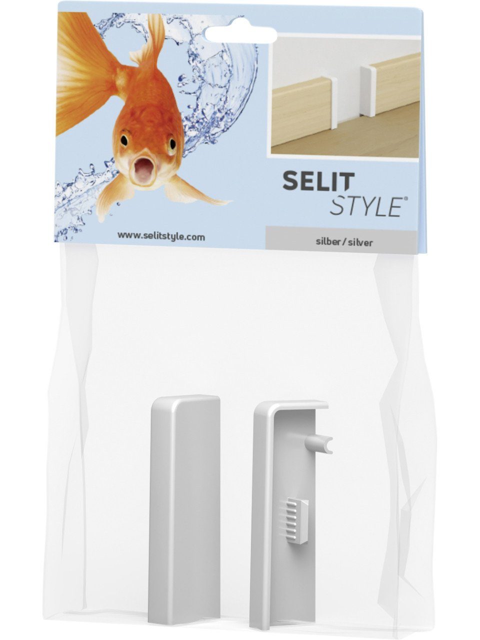 Produktdetails: Höhe: 50 mm | Kein Gehrungsschnitt | Passgenaue Verarbeitung | Material: Polystyrol | Farbe: silber | Inhalt: 2 Stück | Passend zu allen SELITSTYLE Sockelleisten FBL50 | Einfache Montage durch Aufstecken auf die Sockelleiste | Einsatzbereich: Innen |