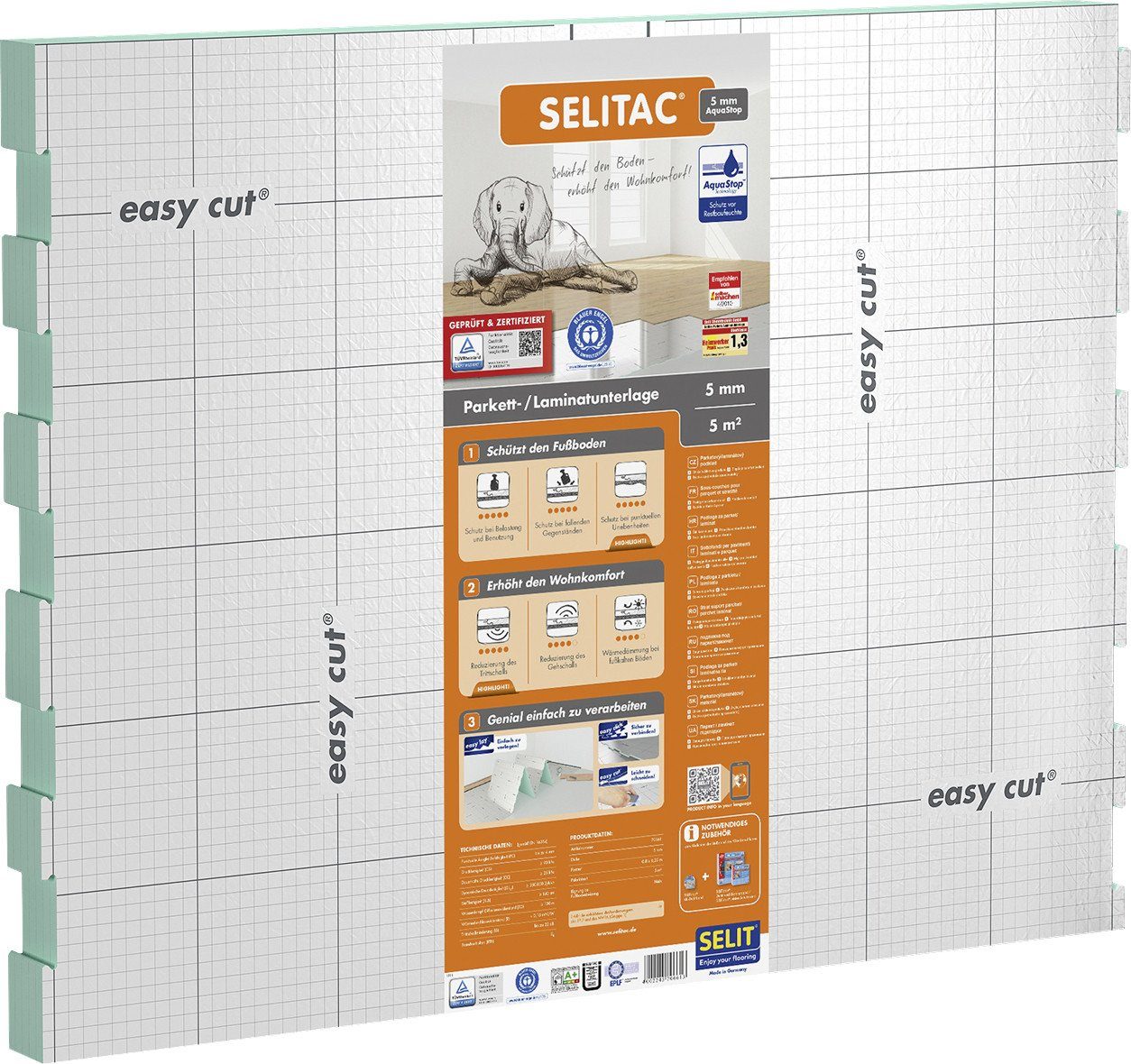 Ideal bei fußkalten Böden! Hervorragende Schalldämmwerte, die enorme Wärmedämmung, der zuverlässiger Schutz bei starker Beanspruchung, sowie ein optimaler Ausgleich von Unebenheiten machen SELITAC® 5 mm AquaStop zum Spitzenprodukt. Als Kombiprodukt mit Dampfbremse schützt die SELITAC® 5 mm AquaStop den Nutzboden vor Feuchteschäden