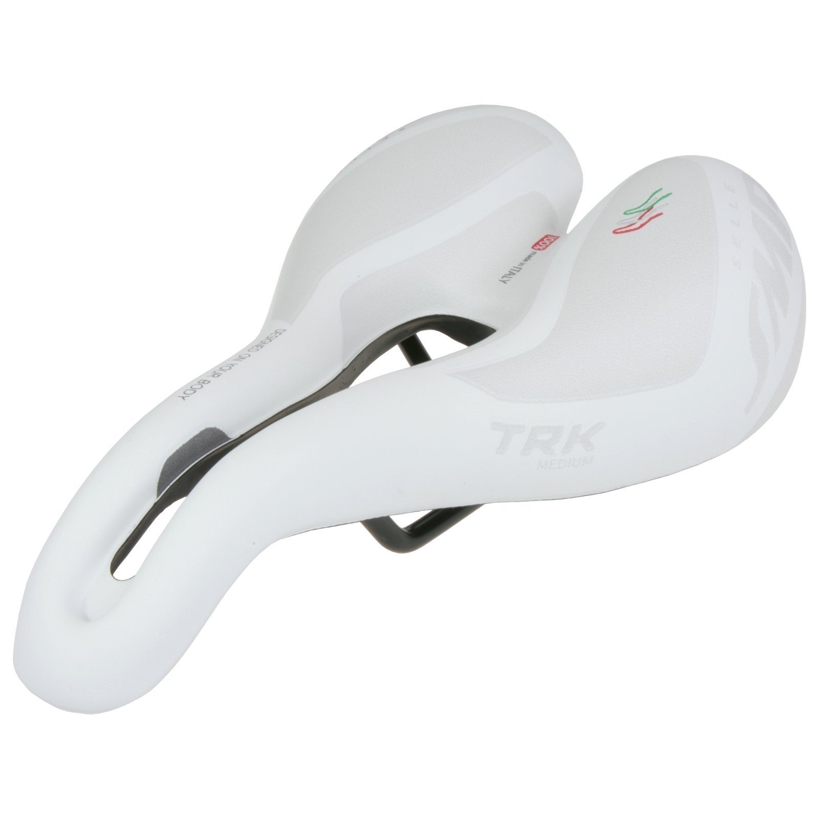 TRK ist die ideale Wahl für Sport-, City-Trekking- oder City-Touring-Fahrräder. Die äußerst bequeme Polsterung verleiht dem Sattel, der für die Benutzung ohne die klassischen ausgepolsterten Radlerhosen konzipiert wurde, ein hohes Maß an Komfort. Die patentierten Produkteigenschaften von Selle SMP, d. h. der freie Mittelkanal, der originelle Vorsprung ('Nase') in Form eines Adlerschnabels und der erhöhte hintere Bereich, verleihen den Modellen noch mehr Komfort.