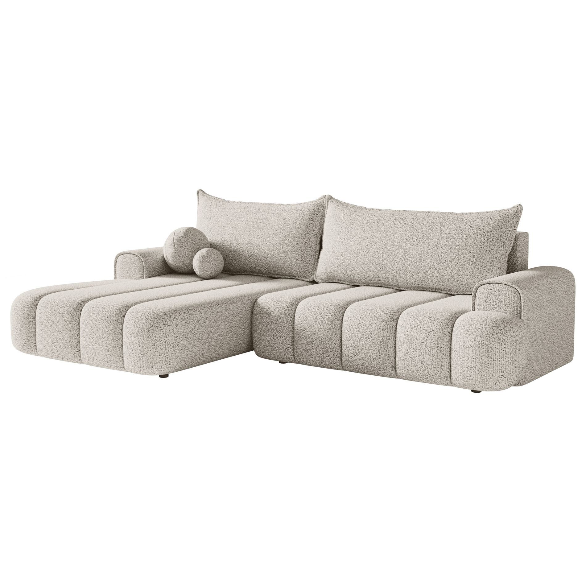 Bouclé-Stoff "Loop" – Ein hochwertiger, strukturierter Stoff, der sich durch seine außergewöhnliche Langlebigkeit und pflegeleichte Eigenschaften auszeichnet. Seine besondere Haptik verleiht dem Sofa einen modernen, gemütlichen Look. Perfekt für alle, die eine elegante, aber strapazierfähige Oberfläche suchen.