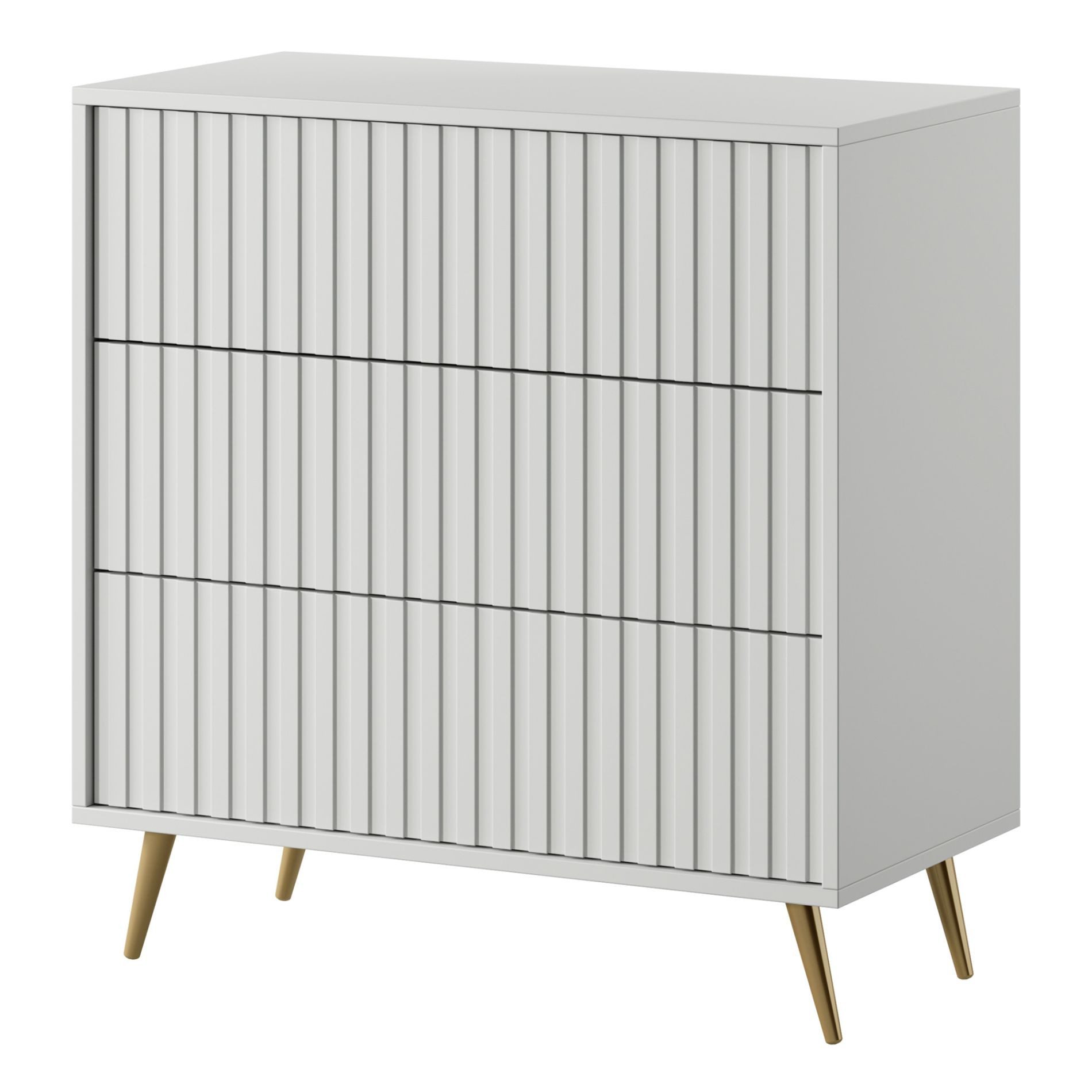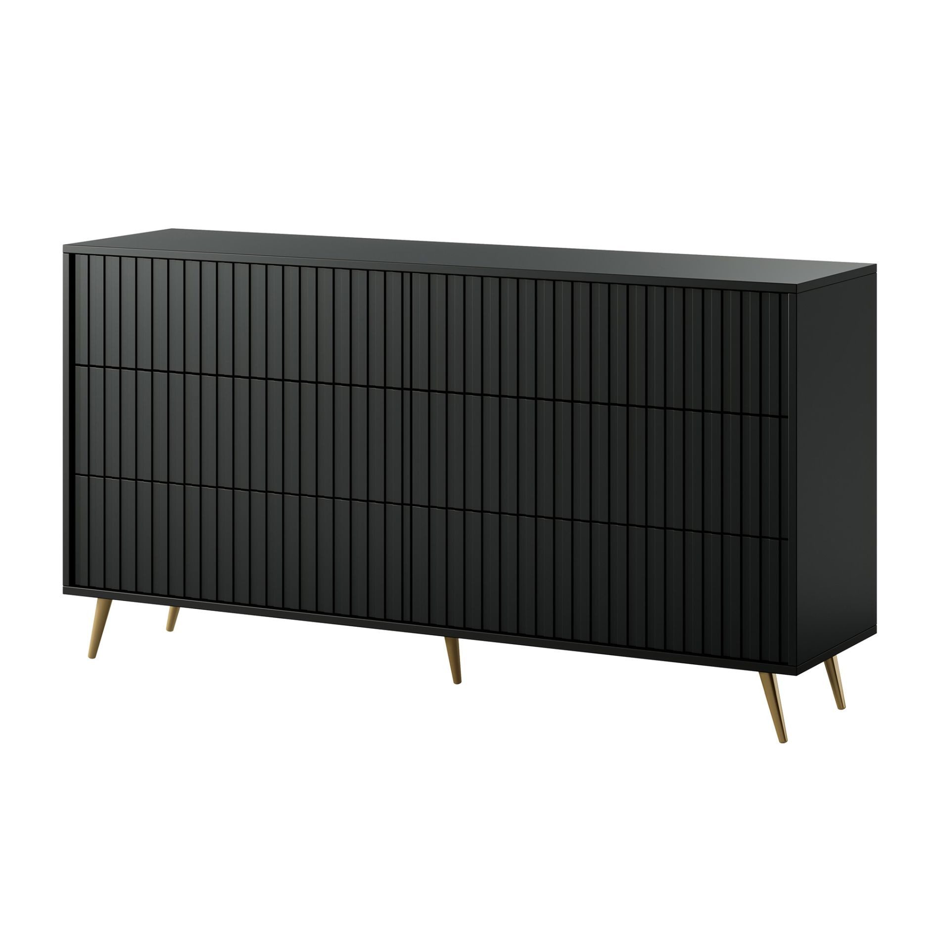 Bringen Sie Stil und Funktionalität in Ihr Zuhause – mit der Bello-Kommode. Ihr zeitloses Design kombiniert moderne Eleganz mit einem Hauch von Luxus. Die charakteristischen Lamellenfronten verleihen dem Möbelstück eine besondere Struktur, während die filigranen Metallbeine – wahlweise in edlem Gold oder modernem Schwarz – für ein harmonisches Gesamtbild sorgen.