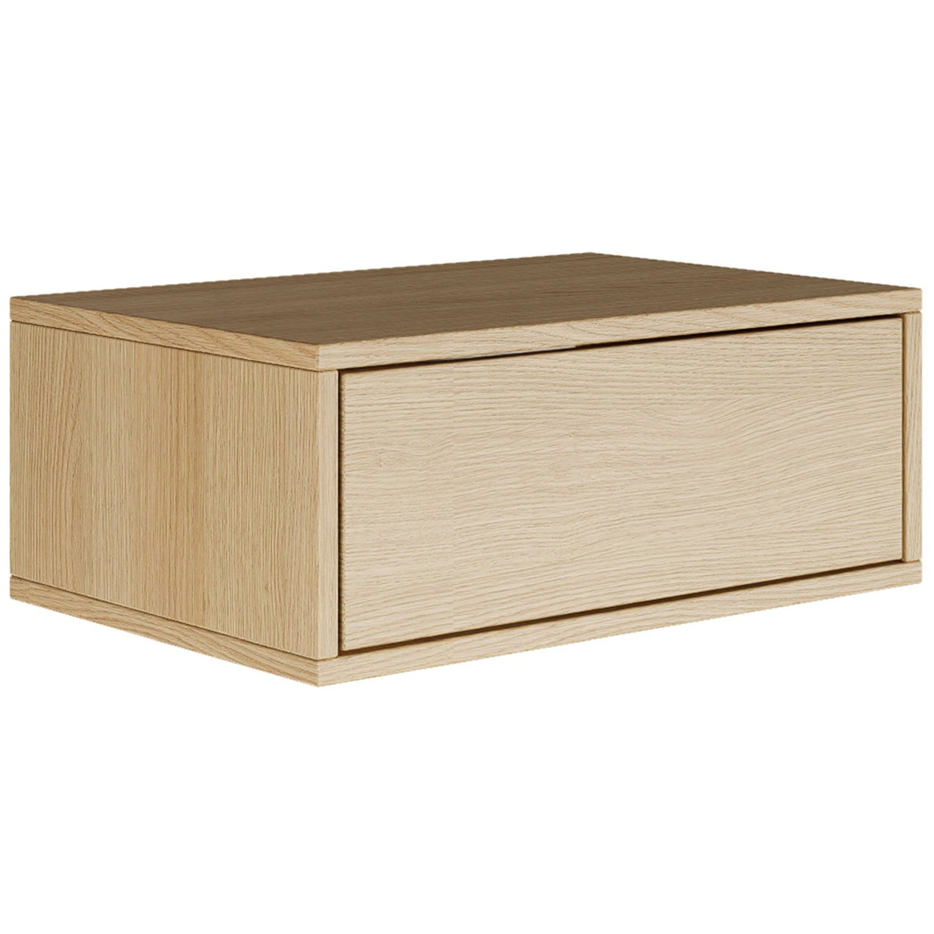 Der wandhängende Nachttisch "Framme" vereint minimalistisches Design mit maximaler Funktionalität. Seine schwebende Optik vergrößert den Raum optisch und schafft eine luftige Atmosphäre – ideal für kleine oder puristisch eingerichtete Schlafzimmer.
